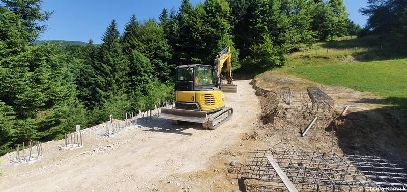 Sanacije plazu na občinski cesti Špitalič-Dolina se nadaljuje. Izvajalec del je začel z betoniranjem vezne stene. Dostopna cesta preko gradišča je vzpostavljena z občasnimi popolnimi zaporami.