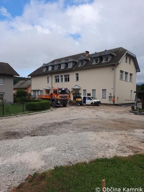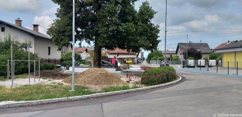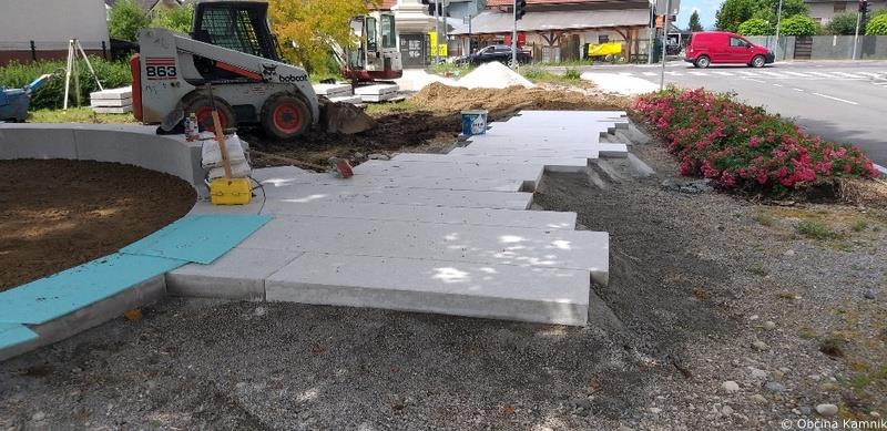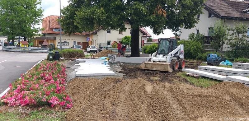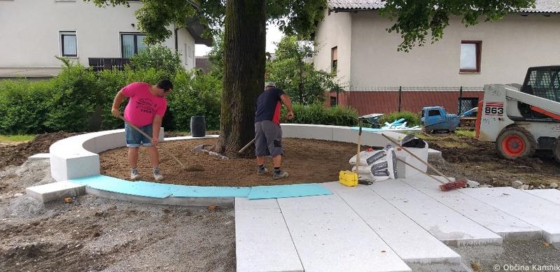V preteklem tednu so bila opravljena, in sicer priprava in izdelava zemeljskih del za montažne plošče, dobava in montaža klopi in montažnih plošč in povezava grobe instalacije.