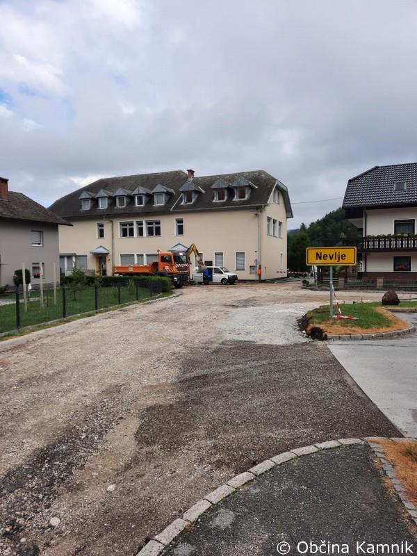 Nadaljujejo se dela na varni šolski poti, in sicer začeli smo z izgradnjo krožišča pri Podružnični šoli Nevlje.