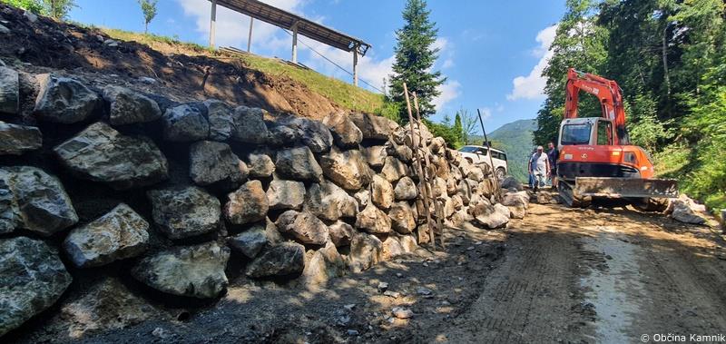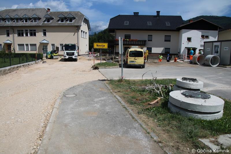 V fazi izgradnje je tudi rekonstrukcija križišča in izgradnja površin za kratkotrajno parkiranje pri Podružnični šoli Nevlje. Sočasno se je na območju krožišča zamenjala tudi vodovodna napeljava in uredilo hidrantno omrežje.Sanacije plazu na občinski cesti Špitalič – Dolina se nadaljuje. Izvajalec del je začel z gradnjo podpornega kamnitega zidu v dolžini 26,5 metrov nad cesto, kjer je prišlo do plazenja.