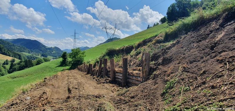 Na spodnjem delu ceste je predviden še en kamniti zid, v dolžini 10,60 metrov. Sočasno s sanacijo bo urejeno odvodnjavanja na vseh treh odsekih občinske ceste.Na kmetijskem zemljiščuv naselju Špitaličje prišlo do zemeljskega plazu. Lastnik zemljišča je izvedel sanacijo z lesenimi piloti, ki bodo preprečevali nadaljnje širjenje plazu.