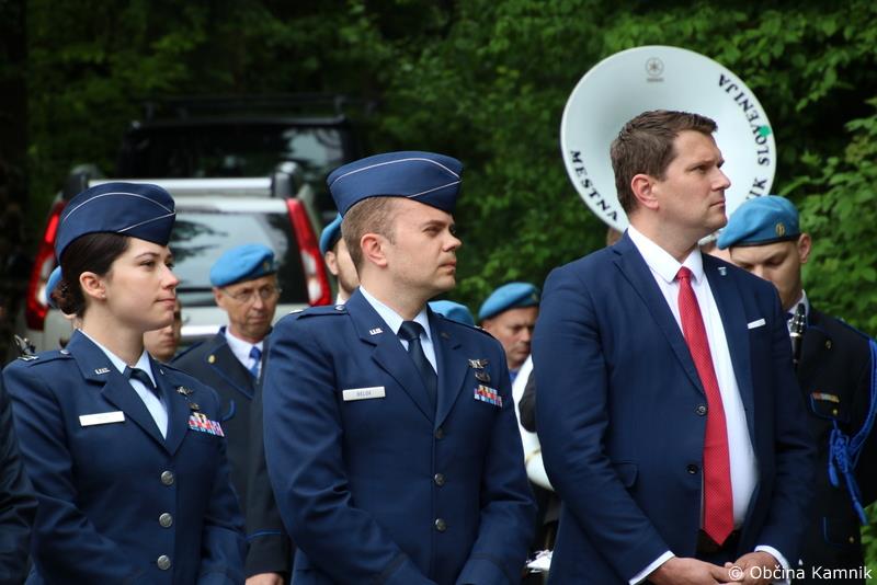 Včeraj, v nedeljo, 6. junija 2021, se je v Češnjicah odvijala tradicionalna spominska slovesnost, ki se jo je udeležil tudi župan Matej Slapar skupaj s poslancem Državnega zbora Marjanom Šarcem, predstavnikoma Veleposlaništva Združenih držav Amerike, majorjem in vodjo pisarne za obrambno sodelovanje Viktorjem Belovom ter stotnico Emily Trop, predsednikom Združenja borcev za vrednote NOB Kamnik Dušanom Božičnikom in predsednikom KO NOB Tuhinj Srečem Berlicem ter ostalimi predstavniki veteranskih organizacij občine kamnik. Tokratna slavnostna govornica je bila Valeriji Skrinjar Tvrz.