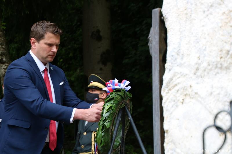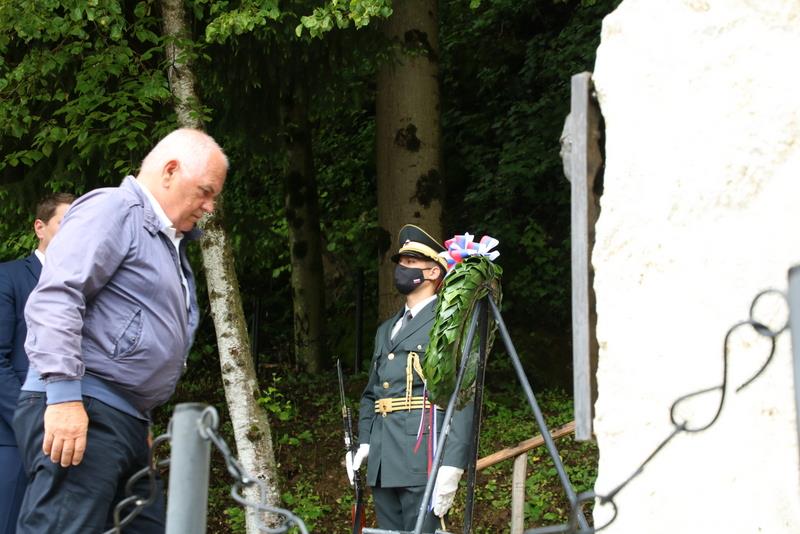 Na mestu spomina in opomina se je delegacija, ob prisotnosti Častne enote Slovenske vojske in zastavonoš, s položitvijo venca poklonila dr. Petru Držaju, vodji ameriške vojne misije, kapetanu Charlesu Fisherju, dvema ameriškima oficirjema Juliusu Rosenbergu in Ernstu Knothu, ter dvema britanskima oficirjema, majorju Mathewsu in poročniku Edwardu Parksu, ki so v letih 1944 in 1945 padli za svobodo v teh krajih.
