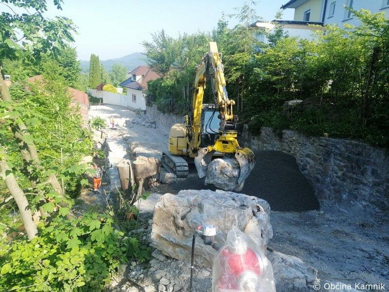 Trenutno je vgrajena že vsa kanalizacija za odpadne vode, vodovod in zaščitne elektro do črpališča ter zaščitne cevi za javno razsvetljavo. V tem tednu se bo nadaljevalaizgradnja meteorne kanalizacije izgradnja opornega zidu ter priprava cestne konstrukcije pred asfaltiranjem.