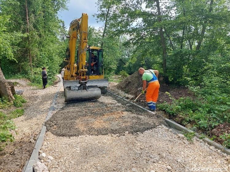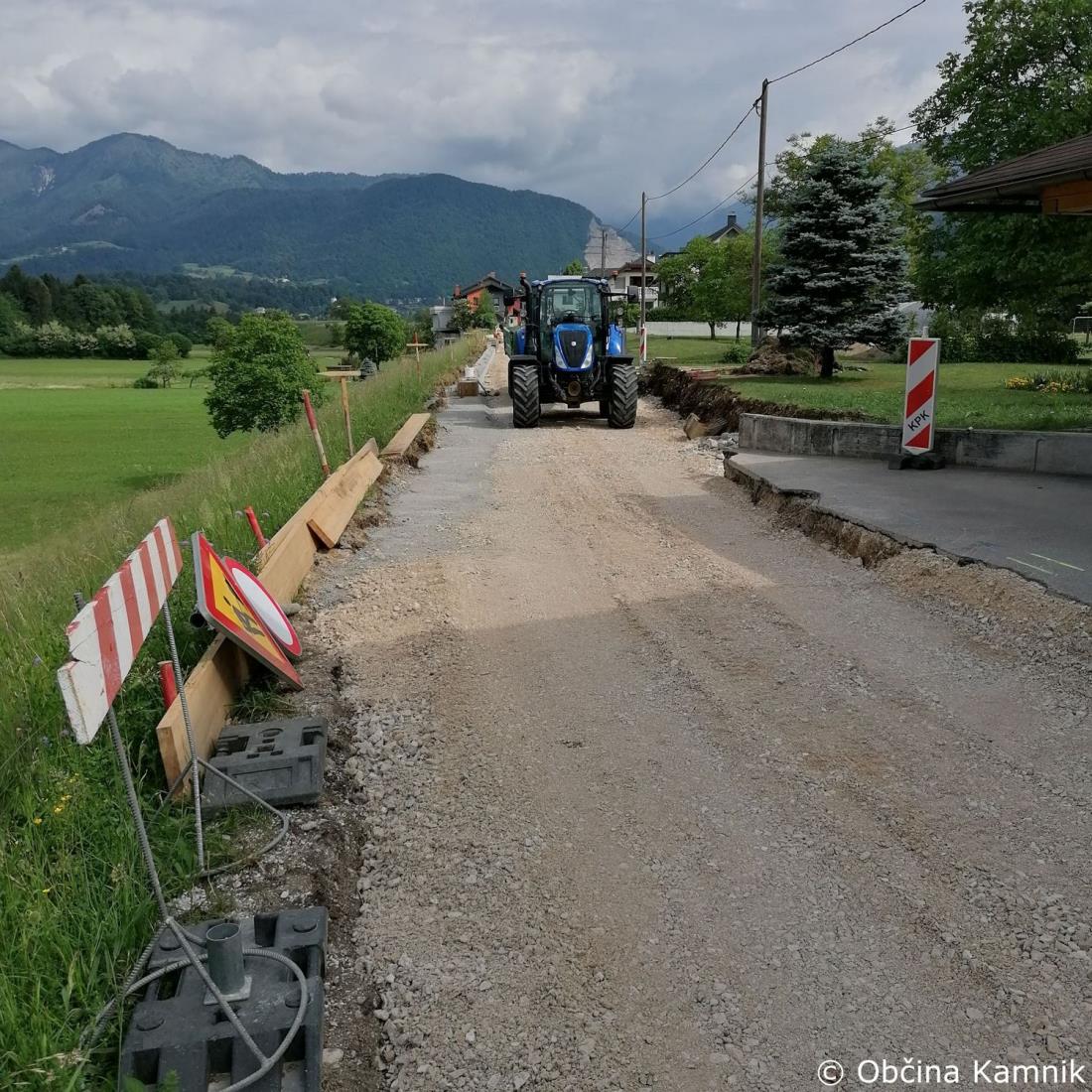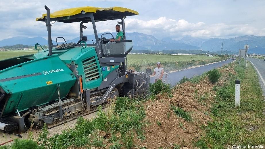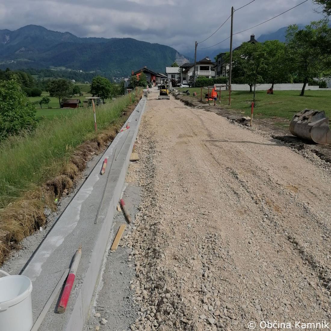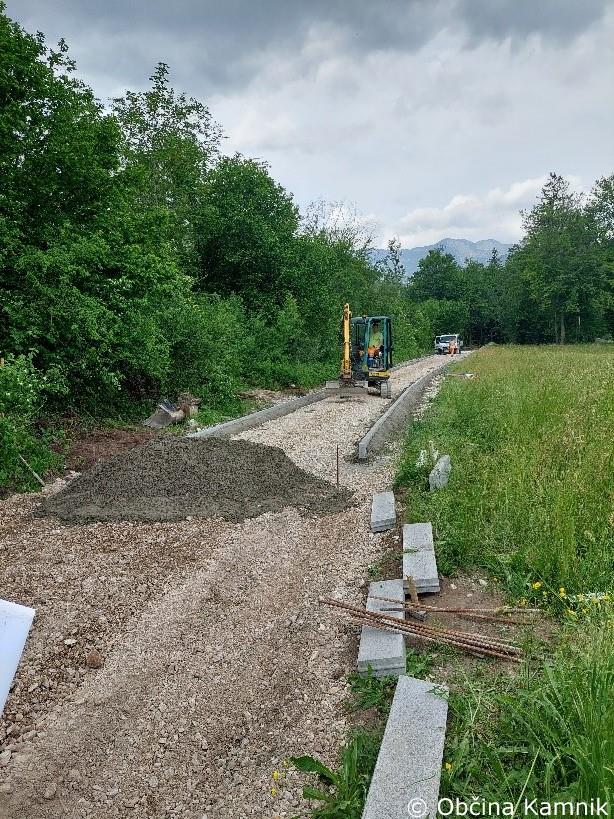 Dela na Kolesarski povezavi Kamnik–Godič se nadaljujejo v skladu s predvidenim terminskim načrtom. Nadaljujejo se dela na prepustih in vgrajevanje robnikov.