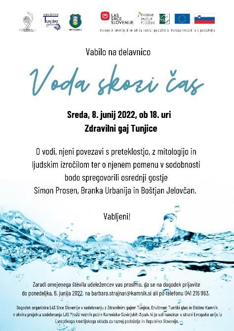 V Zdravilnem gaju Tunjice bo 8. junija potekala delavnica z naslovom Voda skozi čas. Tema delavnice bo odnos naših prednikov do vode in povezava vode z mitologijo in ljudskim izročilom Slovencev. V mesecu juniju (9. in 16. junij) bo organizirano izobraževanje za vodnega someljeja. Center Rinka organizira 21. in 22. junija dvodnevni pohod po vodni poti Kamniško-Savinjskih Alp.