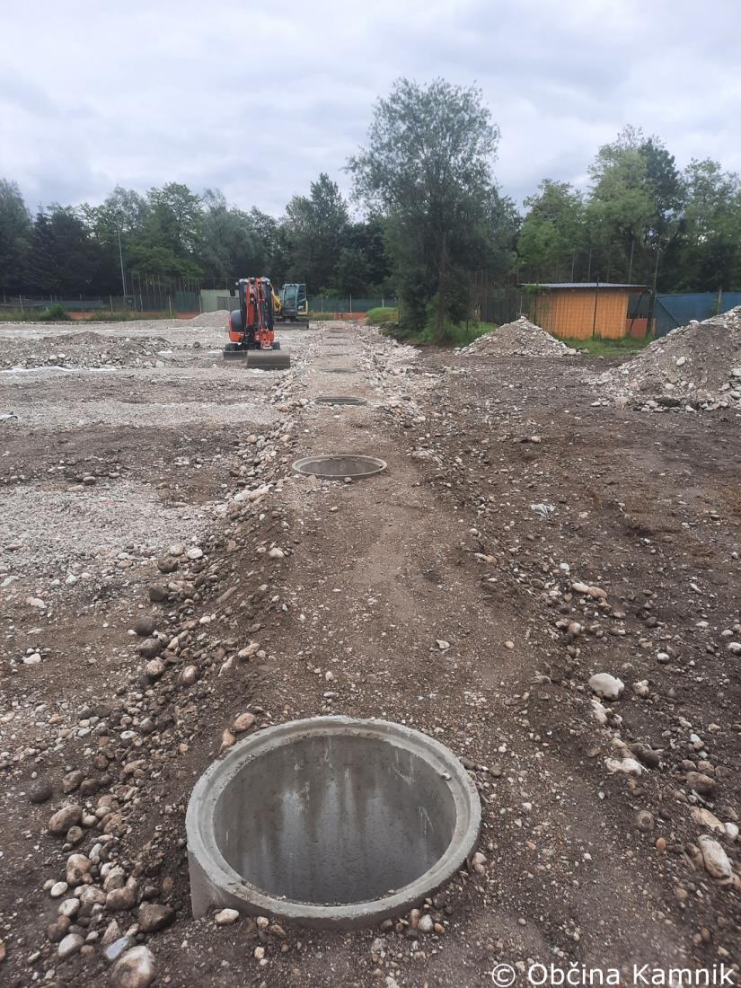 V Občini Trzin se nadaljujejo dela v industrijski coni Trzin, rušitvena dela, podiranje robnikov, izkop asfalta za spodnji ustroj, polaganje robnikov, ureditev odvodnavanja meteorne kanalizacije, priprava tampona za asfaltiranje in podobno.