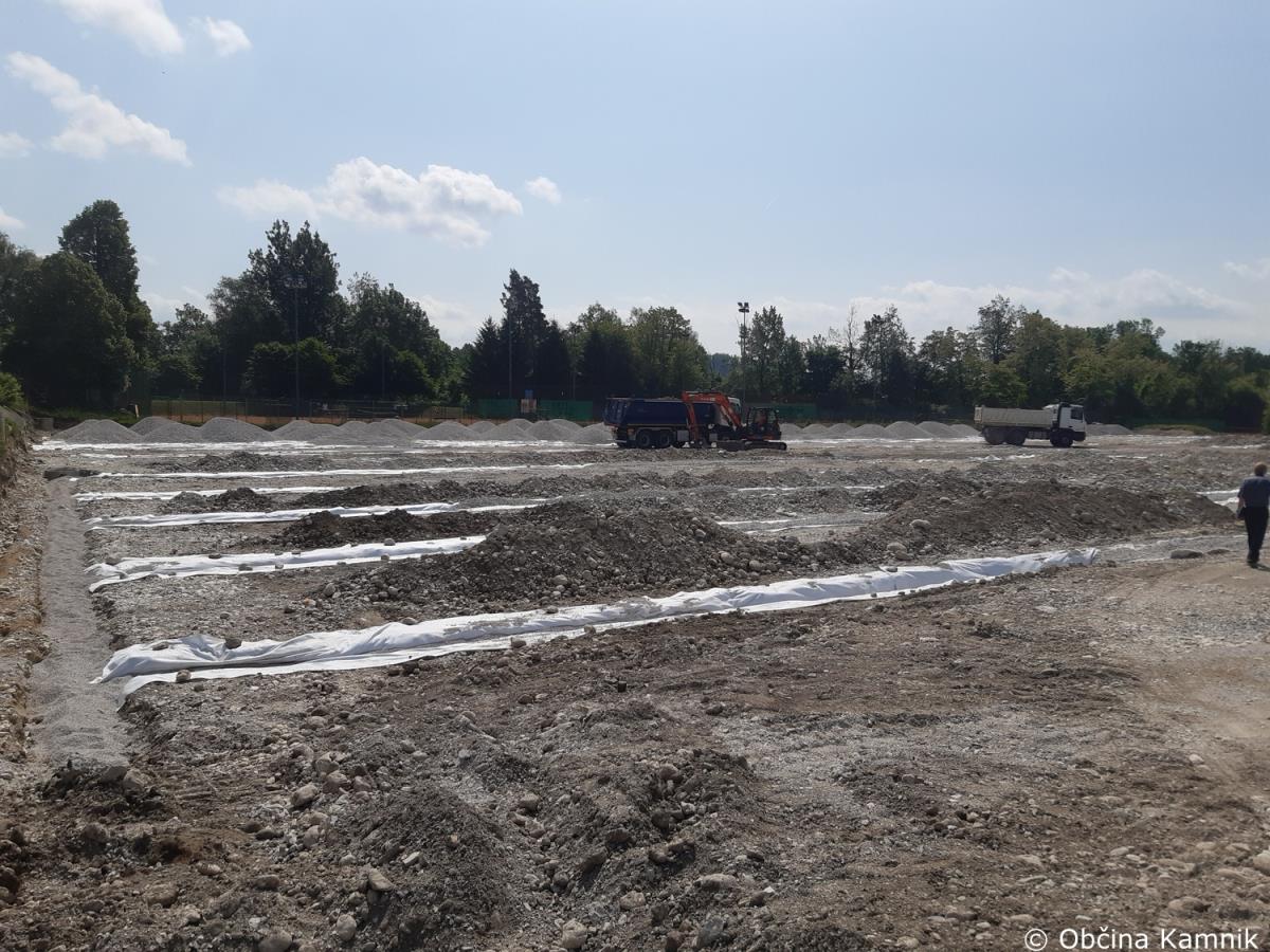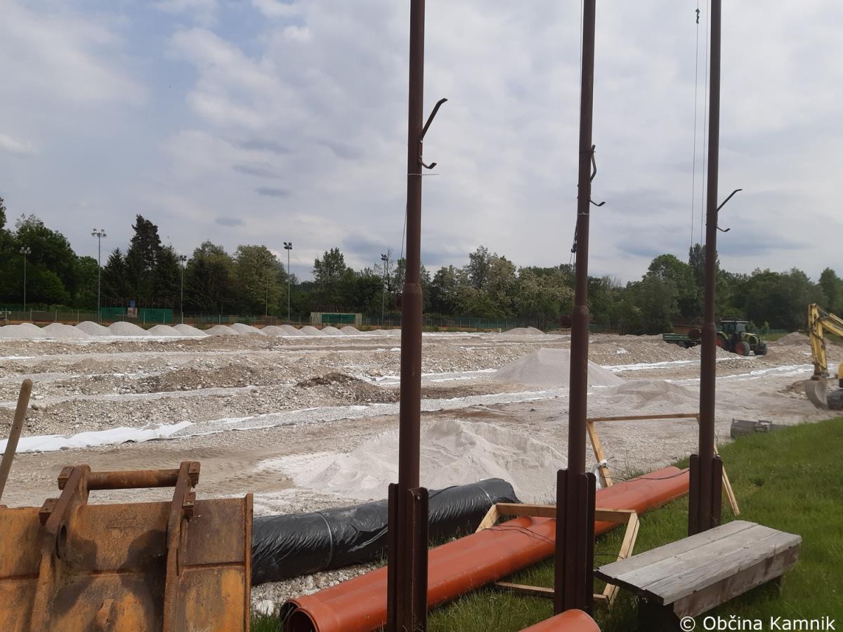 Izvajalec del, družba FS Group, d. o. o., je v 21. tednu dokončal izgradnjo vezne kanalizacije za odvajanje padavinskih voda v sistem ponikovalnic ter drenaže, na južni strani igrišča je bilo vgrajenih 9 temeljev za postavitev stebrov lovilne mreže, na trajno deponijo je bil prepeljan odvečni izkopani material, na gradbišče se je dostavljal material za nasutje granulacije 0-64 mm, na severni strani pa se je pripravil teren za izvedbo podložnega betona za namen postavitve montažnih elementov opornega zidu.