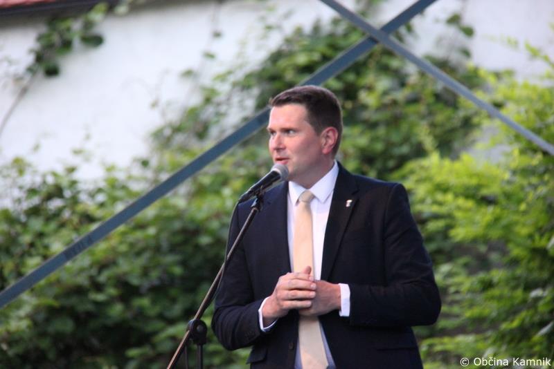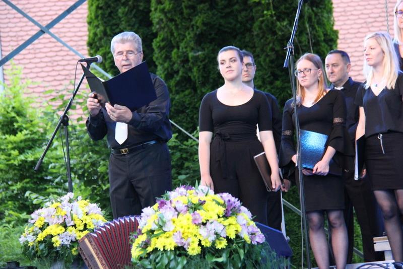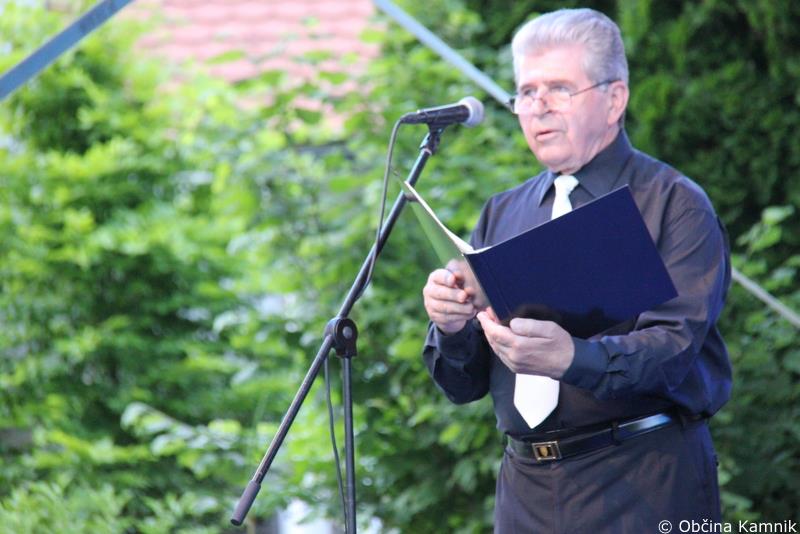 Izrazil je dobrodošlico vsem zbranim v izjemnem okolju Mekinjskega samostana in jih takole nagovoril:»Pravijo, da kdor poje, ne mislil slabo. Prepričan sem, da to velja za vse vas. Že to, da skupaj vztrajate 40 let pomeni, da vas družijo močne vezi in ljubezen do petja, do druženja, do tega, da dajete del sebe vsem nam, ki vas poslušamo že vsa leta. Čestitam vam za vseh 40 let delovanja. Hvala tudi zborovodji Anici Smrtnik, ki zbor vodi že trideset let in vsem posameznikom, ki ste sestavili mozaik tega zbora. Hvala, ker se vedno odzovete z veseljem na vabilo za sodelovanje na občinski ali kaki drugi prireditvi. Globok poklon in iskrene čestitke. Verjamem, da bodo petje in prijateljske vezi med vami trajale še naslednjih 40 in več let. Iskrene čestitke Mešani pevski zbor Odmev Kamnik.«