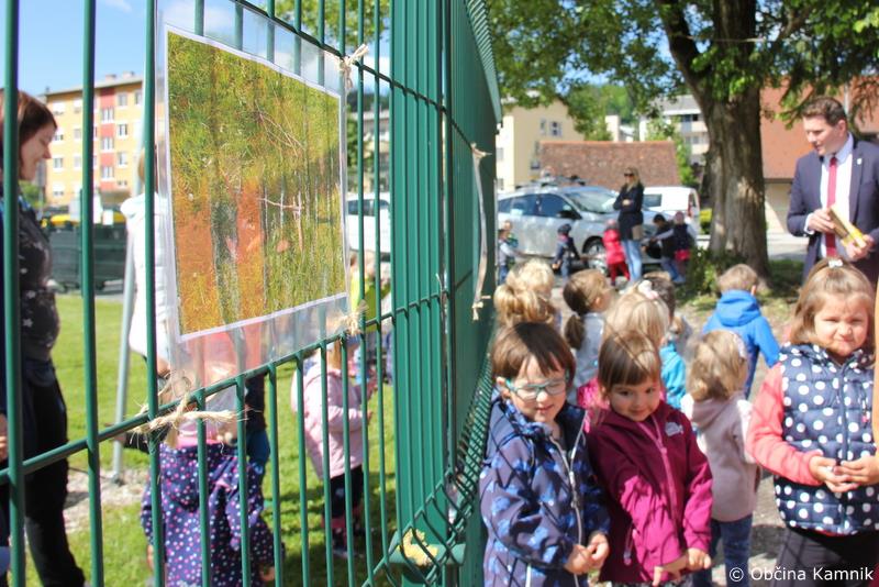 Župan Matej Slapar si je dopoldan skupaj z ravnateljico Zasebnega vrtca Sonček Dito Horvatiček ogledal razstavo fotografij z naslovom Družinska umetnina iz narave. Pripravili so jo otroci vrtca, kjer so v času karantene starše in otroke spodbudili k izletom v naravo in ustvarjanju iz naravnih materialov.