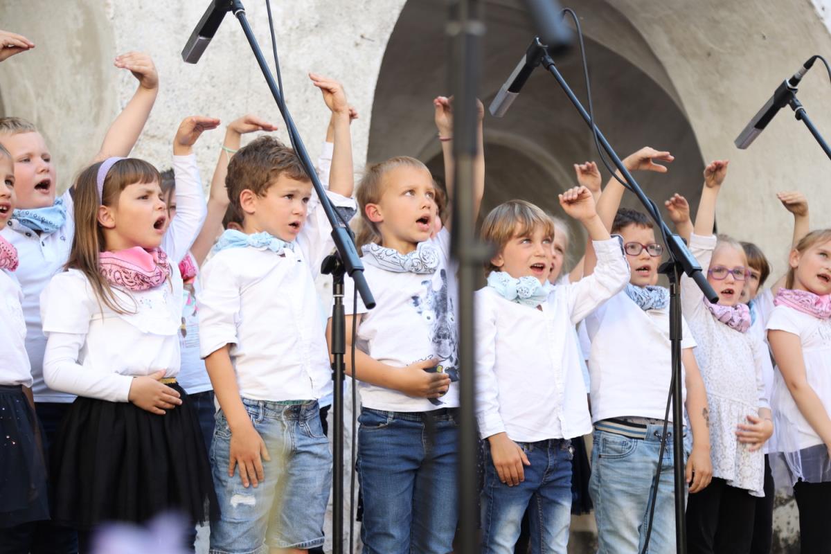 Župan Matej Slapar pa se je zahvalil vsem pevkam in pevcem, ki s svojim udejstvovanjem dokazujejo, da jim je mar za peto besedo: »Drage učenke in učenci, spoštovani starši, stari starši, spoštovano vodstvo kamniških osnovnih šol, prav lep pozdrav s strani Občine Kamnik. Dobrodošli tukaj v Mekinjah, v samostanu, ki nudi edinstveno prizorišče za raznovrstne dogodke. Gre za enega večjih dogodkov, ki se bo odvil tukaj v samostanu Mekinje, kjer vam izrekam iskreno dobrodošlico. Pravijo, da »kdor poje, zlo ne misli« in v zahvalo vsem učiteljicam in učiteljem glasbene vzgoje v kamniških šolah je zanimanje petje v Kamniku na zelo visokem nivoju. Poje namreč ogromno mladih kar pomeni, da jih uvajamo, navdušujemo nad petjem in nad tem, da bodo tudi v prihodnje razvijali ta talent, ki bogati skupnost in razvija mladinske potenciale. V Kamniku imamo bogato tradicija zborovskega petja, ponosni smo na najstarejše pevsko društvo Lira, staro 140 let, ter vrsto drugih pevskih zborov - Odmev, Cantemus, Mavrica, VOX Ane, pevski zbor Šutna in še vrsto drugih. Vse to se kali od najmanjših nog, kar bodo danes predstavile in predstavili naše učenke ter učenci osnovnih šol. Želim vam lepo popoldne in prijetno poslušanje. Hvala.«