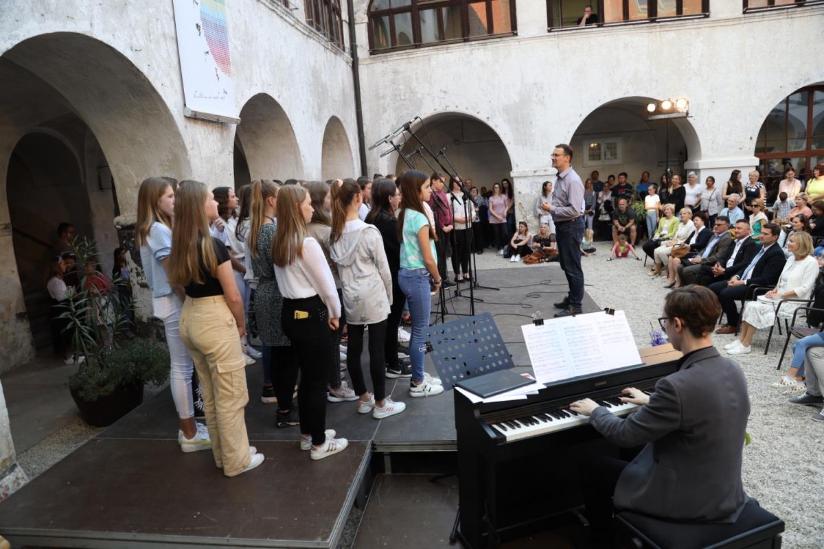 V torek, 31. maja 2022, smo v samostanu Mekinje prisluhnili Območni reviji otroških in mladinskih pevskih zborov občin Kamnik in Komenda z naslovom Poj z menoj. Dogodka se je udeležil tudi župan Matej Slapar skupaj z vodjo kamniške izpostave Javnega sklada Republike Slovenije za kulturne dejavnosti Tonetom Ftičarjem. Slednji so bili tudi organizatorji prireditve, ki je do zadnjega kotička napolnila dvorišče samostana Mekinje.