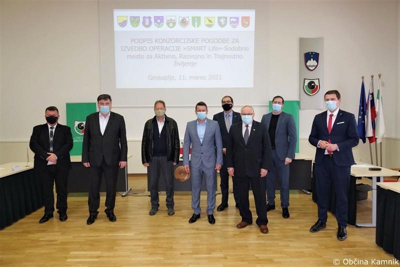 Župani Občin Kamnik, Grosuplje, Ivančna Gorica, Škofljica, Ig, Podčetrtek, Rogaška Slatina, Vrhnika, Makole, Vodice in Šentjur so v četrtek, 11. marca 2021, v Grosupljem podpisali konzorcijsko pogodbo za izvedbo operacije »SMART Life« - Sodobno Mesto za Aktivno, Razvojno in Trajnostno življenje.