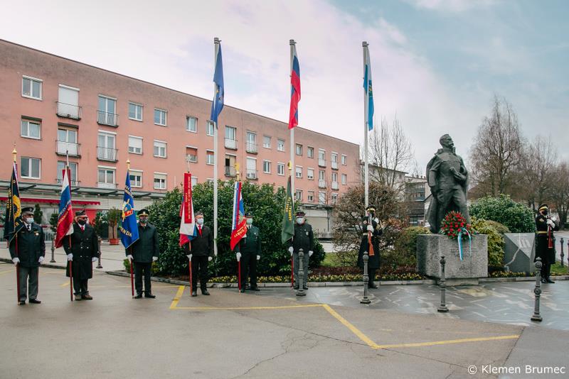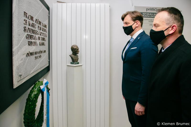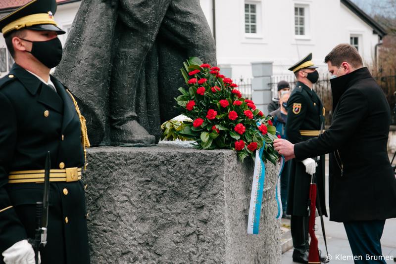 podžupanoma Bogdanom Pogačarjem in Aleksandrom Uršičem včeraj, 28. marca 2021, k spomeniku položil cvetje. Dogodku so posebno noto dodale