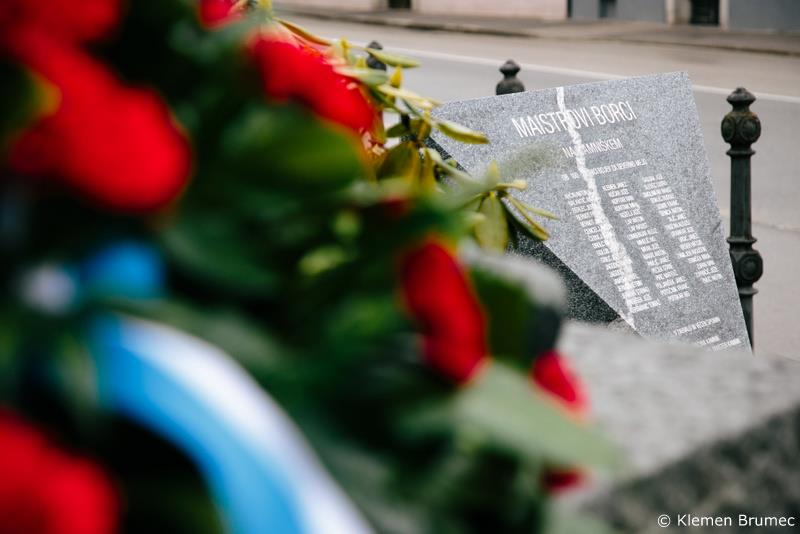 Polaganje cvetja k spomeniku generala Rudolfa Maistra in njegovim borcem
