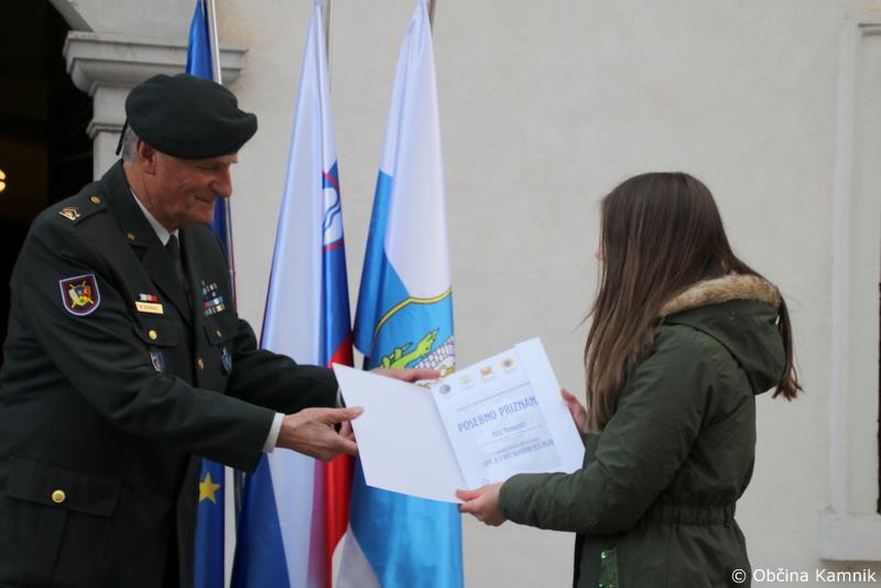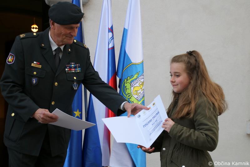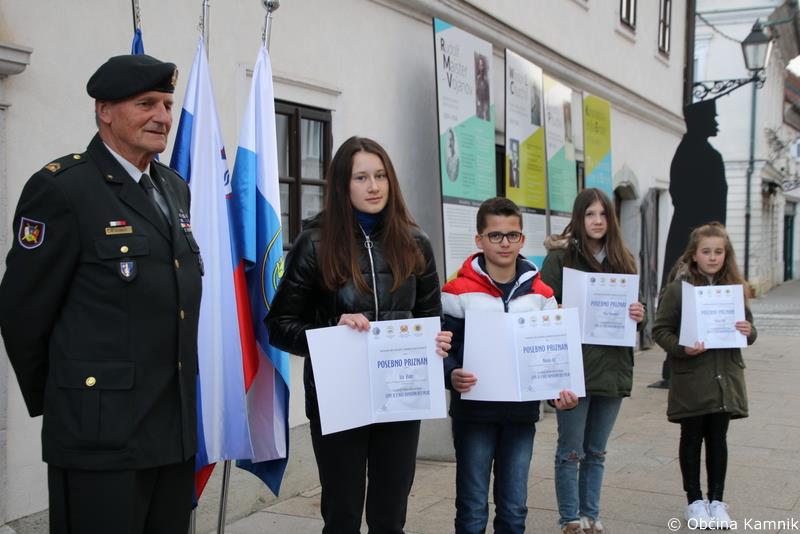 Komisija, ki je vodila postopek izbire najboljših del učenk in učencev kamniških osnovnih šol, je odločila o nagrajencih, predsednik Koordinacijskega odbora gospod Marjan Schnabl pa je najboljšim učenkam in učencu pri Rojstni hiši Rudolfa Maistra Kamnik podelil posebna priznanja in se zahvalil tudi njihovim mentoricam.