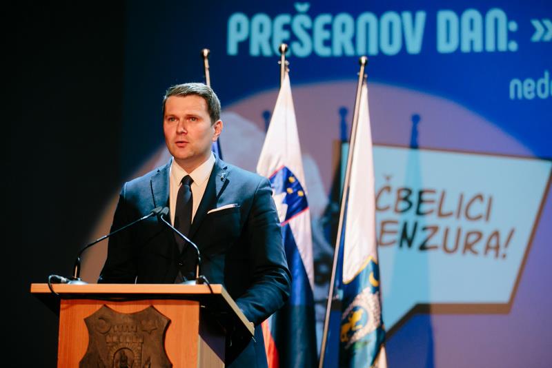 Župan Matej Slapar je ob tej priložnosti izrekel iskreno zahvalo vsem kulturnim ustvarjalcem, ki se v teh drugačnih časih niso predali in delujejo na drugačen način, pa vendarle ohranjajo kulturo na Kamniškem: »Letošnja proslava je zelo drugačno od vseh, ki smo jih bili vajeni v vsej zgodovini, pa vendar v zahvalo vsem tistim, ki ste omogočili, da jo imamo. Velika zahvala gre Domu kulture Kamnik, Mladinskemu centru Kotlovnica, Območni izpostavi Kamnik Javnega sklada Republike Slovenije za kulturne dejavnosti in seveda vsem posameznikom, da smo kljub posebnim razmeram, v katerih se nahajamo, proslavo pripravili na ta način. Kultura je temelj narodne identitete. Kultura bogati narod. Kultura bogati življenjski prostor. Kultura nas dela drugačne od ostalih. Slovenski jezik in pisana beseda nas dela drugačne od ostalih v svetovnem merilu. Zato je toliko bolj pomembno, da slovensko kulturo, pisano, govorjeno in peto besedo podpiramo. Podpiramo ustvarjalce in kulturnike. Ponosen sem, da smo v Kamniku v preteklem letu kljub epidemiji izvedli mnogo kulturnih in drugih družabnih prireditev. Iz razpisa za kulturne dejavnosti smo ga izvedli skorajda 100-odstotno in izvedlo se je mnogo kulturnih in družabnih dogodkov in čestitke vsem posameznicam in posameznikom, društvom in skupinam, ki skrbite za to, da kultura v našem mestu živi. V okviru Občine Kamnik se trudimo, da vlagamo čim več sredstev v kulturo in kulturne dejavnosti in imamo kulturo na visokem nivoju. Tudi infrastruktura je pomembna. V preteklih dveh letih smo odkupili prostore Glasbene šole Kamnik, vlagamo v kulturne domove po krajevnih skupnostih in smo tik pred odkupom dvorane kulturnega doma na Duplici. Z odkupom zemljišč in prostorov v nekdanji Smodnišnici pa, verjamem, delamo resne temelje za razvoj in obstoj kulture na tem našem področju. Iskrena hvala vsem, ki ustvarjate kulturo na Kamniškem in ne nazadnje tudi hvala državi, ki je poskrbela, da ste tisti, ki v tem trenutku ne morete ustvarjati, dobivali vsaj minimalno nadomestilo. Naj živi kultura. Naj živi Kamnik. Naj živi Slovenija.«