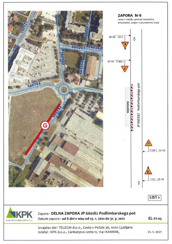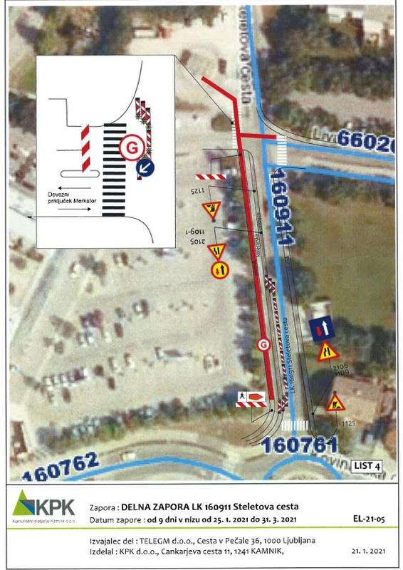 Občanke in občane obveščamo o začasni spremembi prometnega režima. Predlagatelju Telegm d.o.o., Cesta v Pečale 36, 1000 Ljubljana, se dovoljuje zaradi »gradnje kablovoda« izvesti začasno spremembo prometnega režima – delno in popolno zaporo.