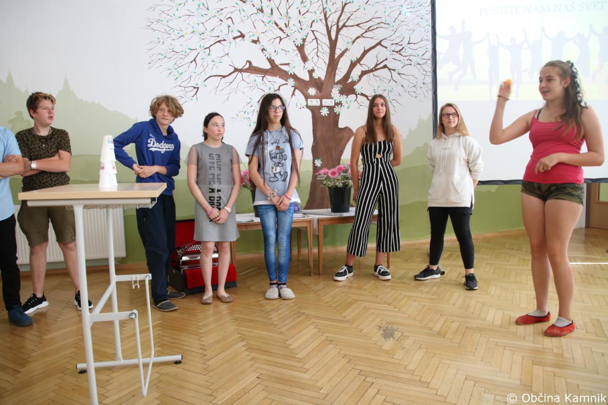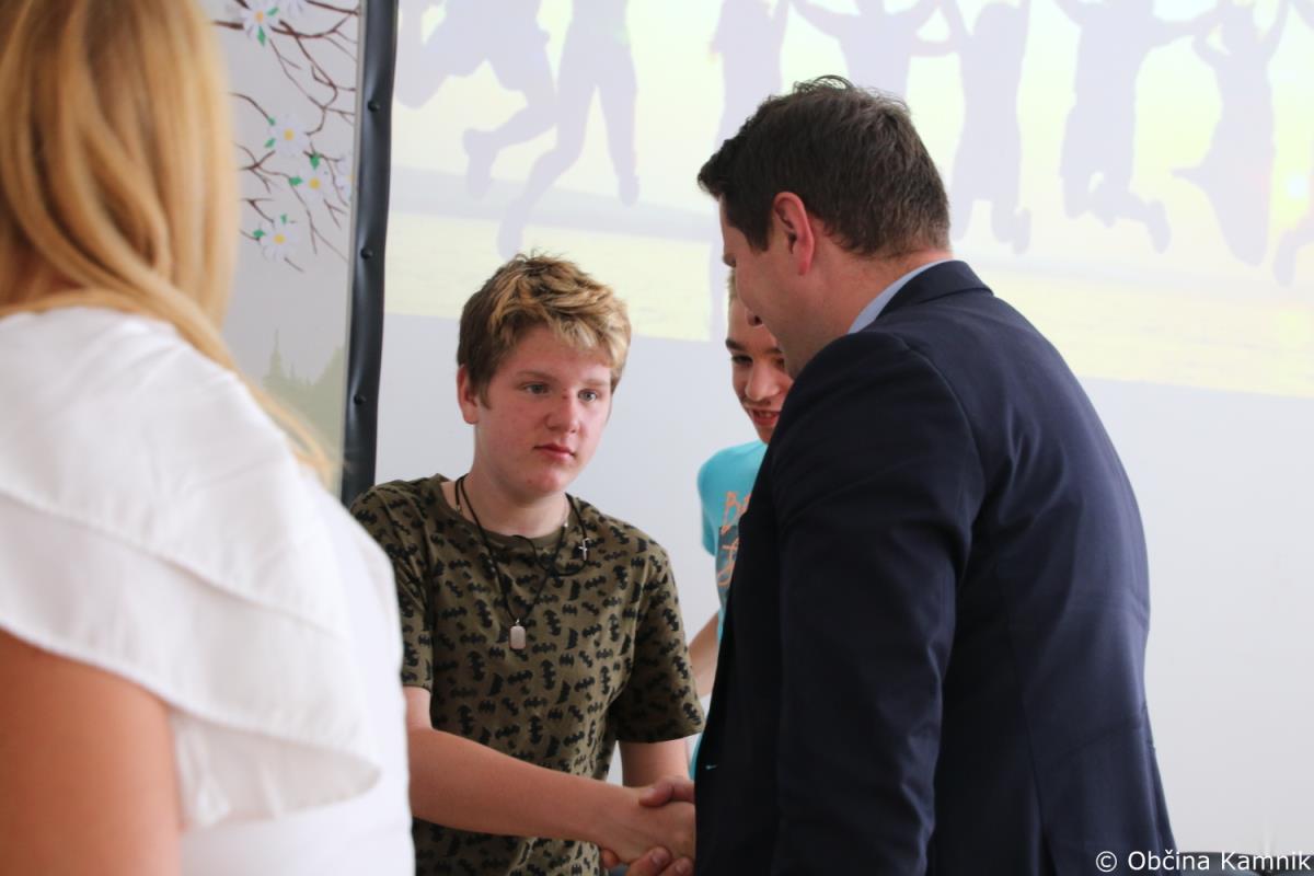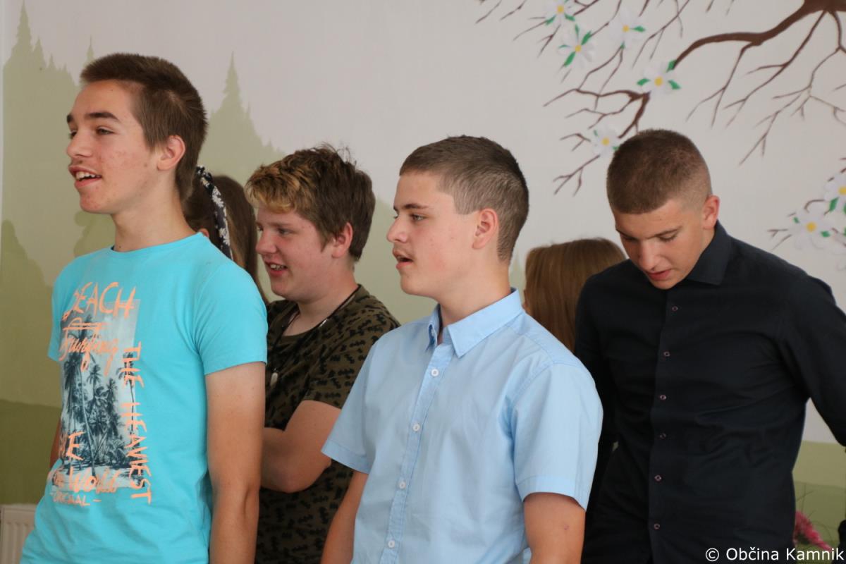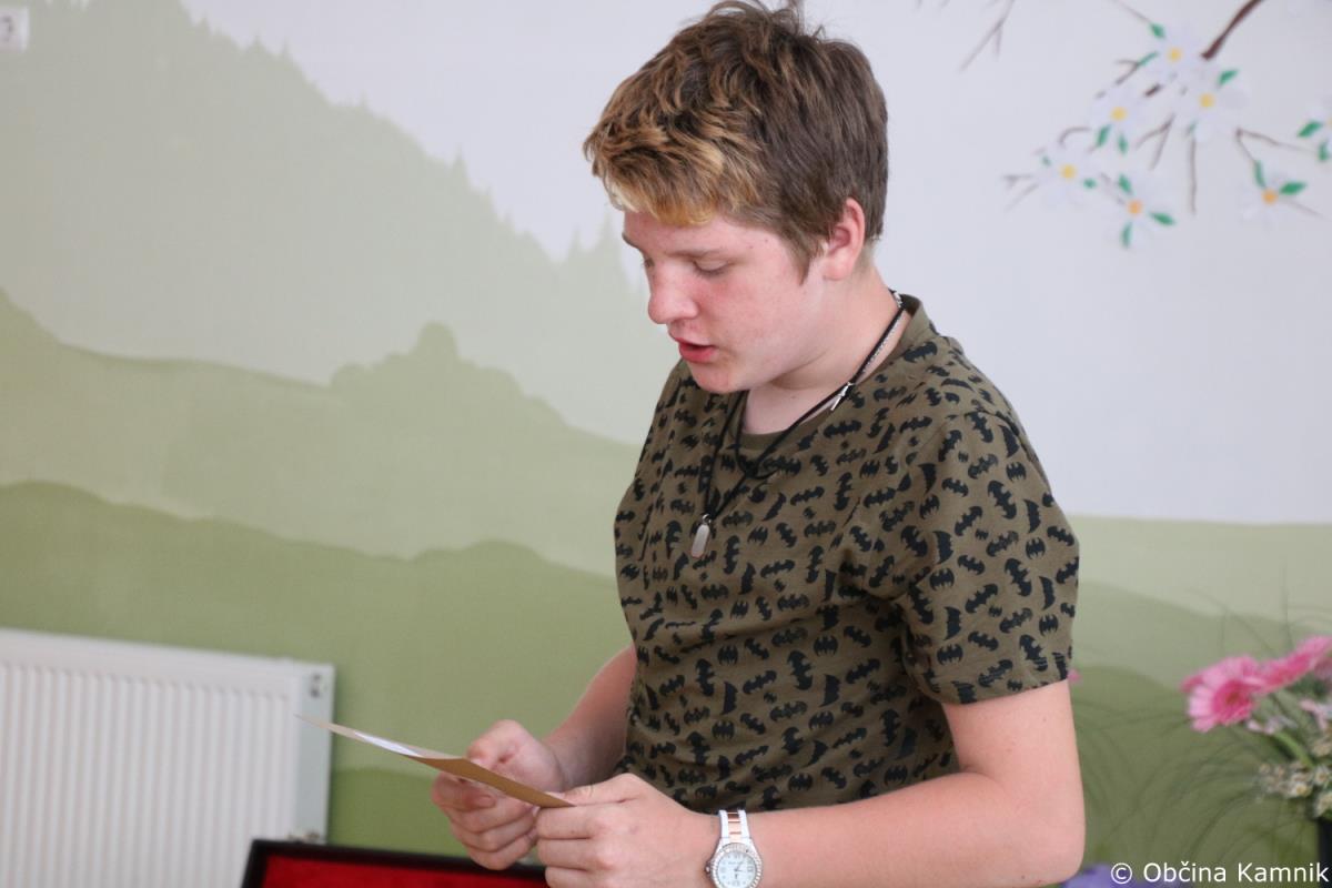 Župan Matej Slapar pa je ob tej priložnosti devetošolcem namenil naslednjo popotnico: »Na Osnovni šoli 27. julij Kamnik ne bo več isto, saj ne bo več vas, dragi devetošolci, štirih izjemnih fantov, ki odhaja v svet. Odhajate v nadaljnje šolanje in prepričan sem, da ste z znanjem, ki ste ga prejeli v osnovni šoli in je na visokem nivoju, dobro opremljeni za nadaljnje življenje. Kot je bilo že danes povedano, če boste nadaljevali tako, d ste pridni, delavni, pošteni in zavzeti, boste uspelo tam, kjer ste si zadali. Da boste torej uspešni peki, mizarji, avtomehanik in gradbeni šef. Sledite svojim sanjam in uspelo vam bo. Ohranite vrednote poštenja, delavnosti in zavzetosti ter izpolnjujte tisto, kar vam bo zadano. Na Osnovni šoli 27. julij Kamnik se celoten strokovni kader resnično izjemno trudi in te osnove, ki ste jih dobili so hvale vredne. Zato je tudi prav, da ste se malo prej zahvalili vsem učiteljem in ostalim zaposlenim na šoli, ki so vam na tej poti pomagali. Borite se naprej, ko pa bo težko, ko boste na križpotju, pa se lahko obrnete in zanesite na starše, prijatelje in učitelje. Srečno naprej in čestitke za vaš uspeh na Osnovni šoli 27. julij Kamnik.«