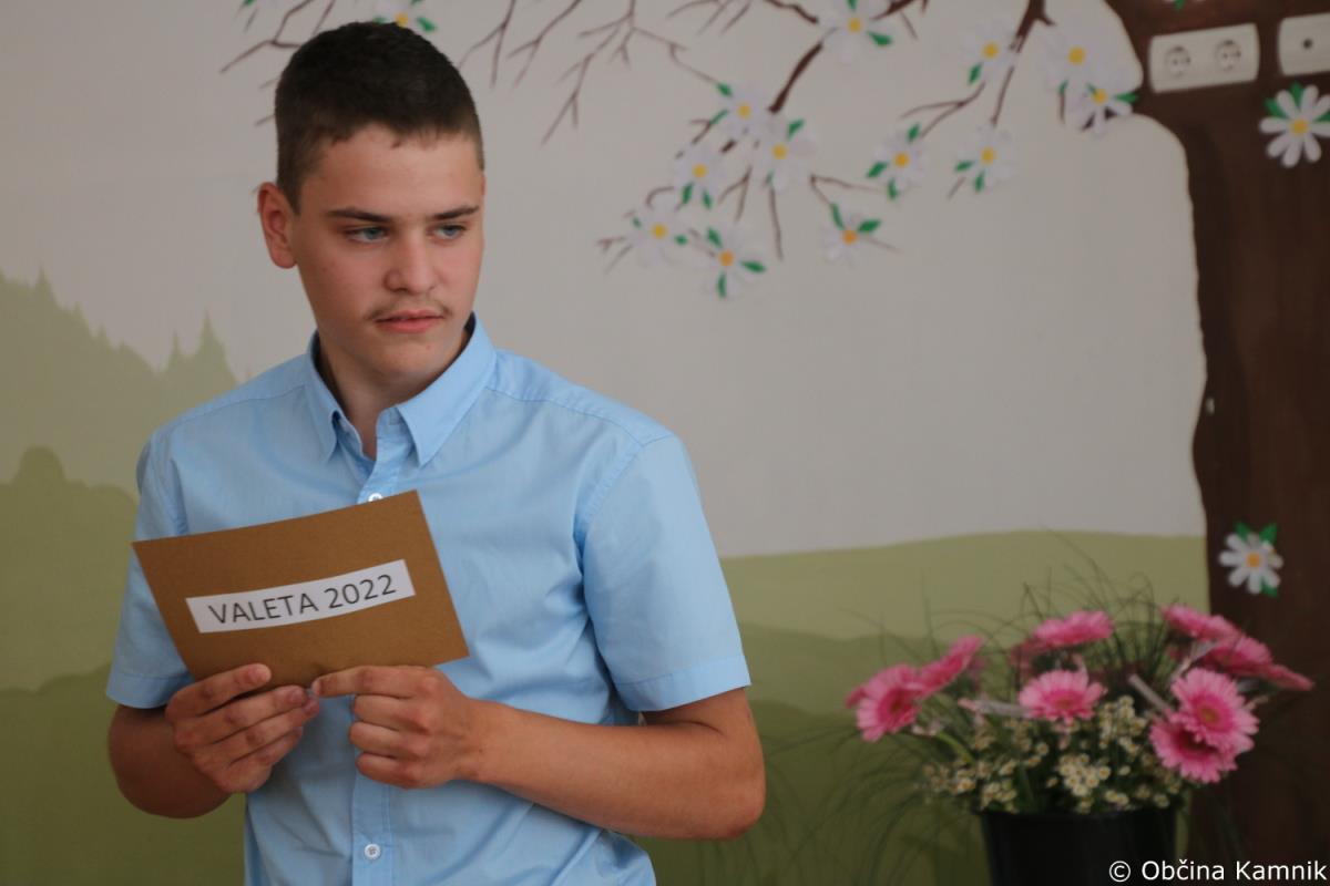 Danes so imeli na Osnovni šoli 27. julij Kamnik valeto, ob tem pa so se štirje učenci poslovili od osnovnošolskih klopi. Lepo popotnico in iskrene želje jim je ob tej priložnosti namenil tudi župan Matej Slapar skupaj z ravnateljico Osnovne šole 27. julij Kamnik Jasno Lampe.