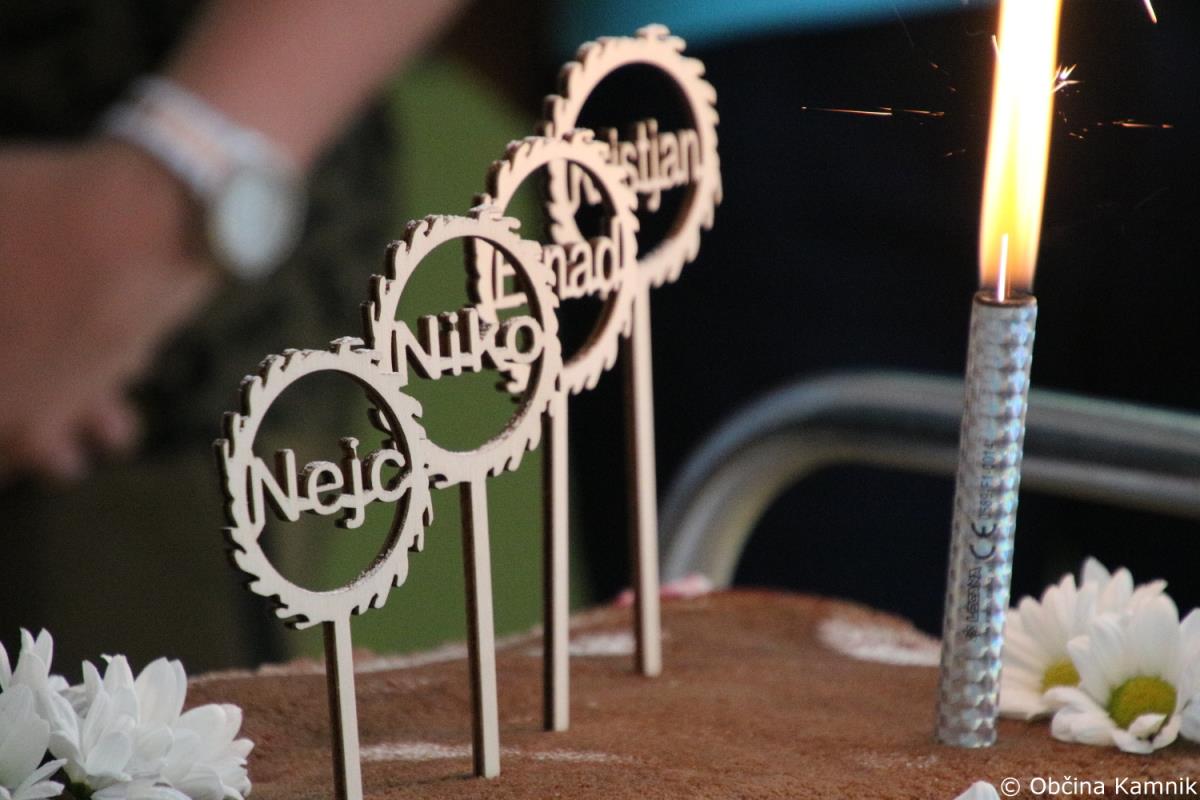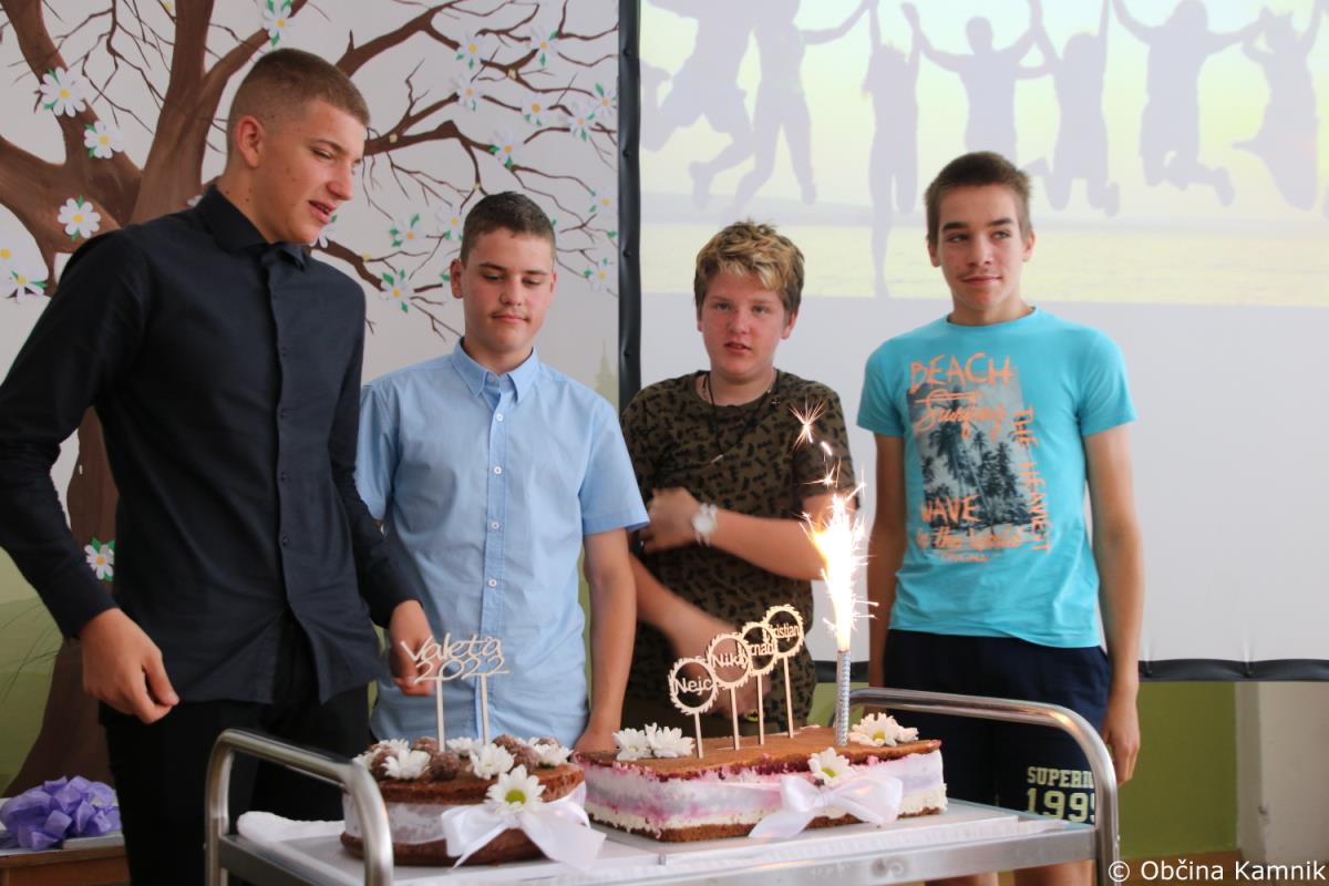 Niko, Kristjan, Nejc in Ernad so nam povedali, kaj si v življenju želijo početi in nam v kratki videovsebini več povedali tudi o sebi. Zabavali so se ob zvokih harmonike in prepevanju svojih sovrstnikov ter ob tej priložnosti, kot je že tradicionalno, predali ključ osmošolcem. Kot se za praznovanje spodobi, pa so se posladkali še z okusno torto.