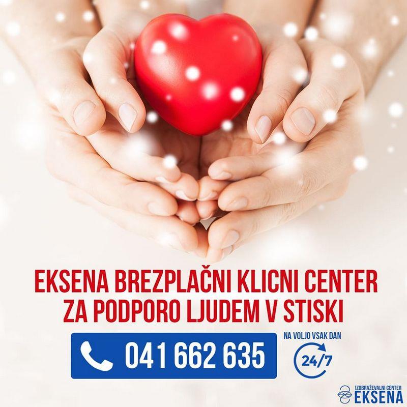 V trenutni izredni situaciji koronavirusa v Sloveniji smo za vse, ki bi se znašli v stiski in bi potrebovali podporo, odprli EKSENA BREZPLAČNI KLICNI CENTER ZA POMOČ LJUDEM V STISKI.