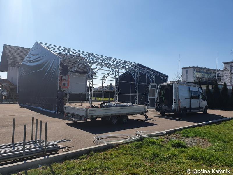 Danes, 19. marca, se nadaljuje postavitev dekontaminacijske cone za osrednjo gasilsko enoto Kamnik (GEŠP-gasilska enota širšega pomena Kamnik), ki se bo uporabljala za potrebe gasilskih vozil in opreme.