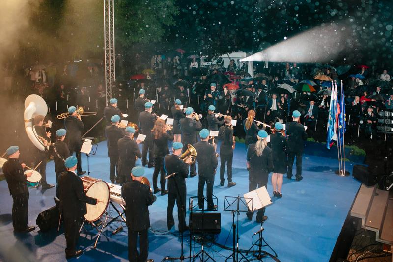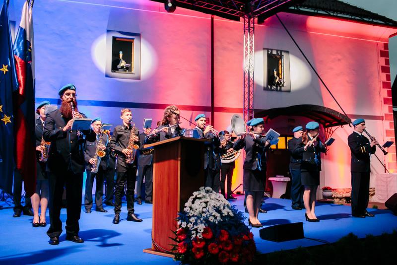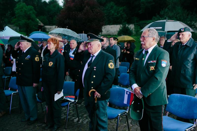 zastavonoš Območnega združenja veteranov vojne za SlovenijoKamnik – Komenda, Policijskega veteranskega društva Sever Kamnik, Društva general Maister Kamnik, Združenja borcev za vrednote NOB Kamnik in Zveze slovenskih častnikov območnega združenja Kamnik – Komenda je veličastno, tudi iz oken samostana, zazvenela