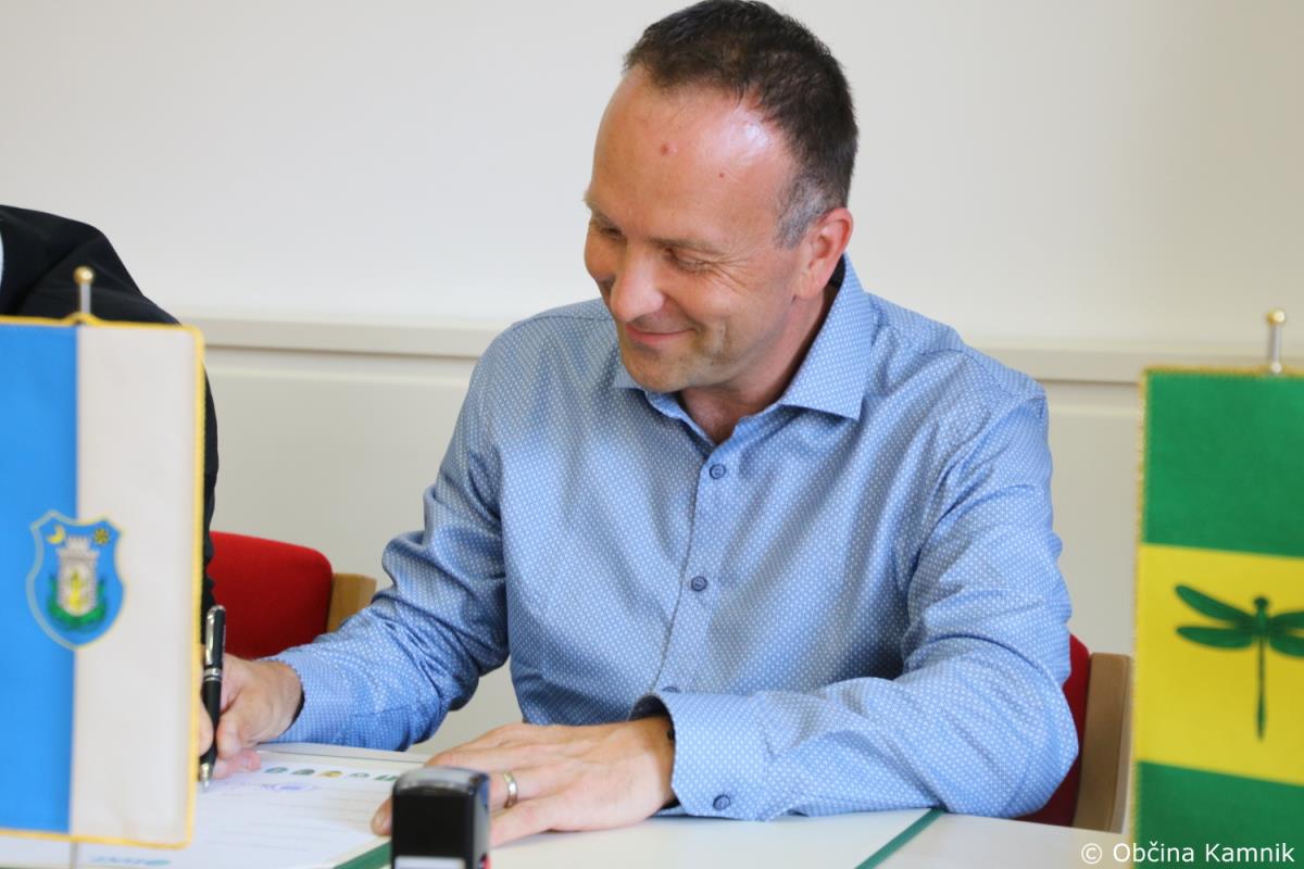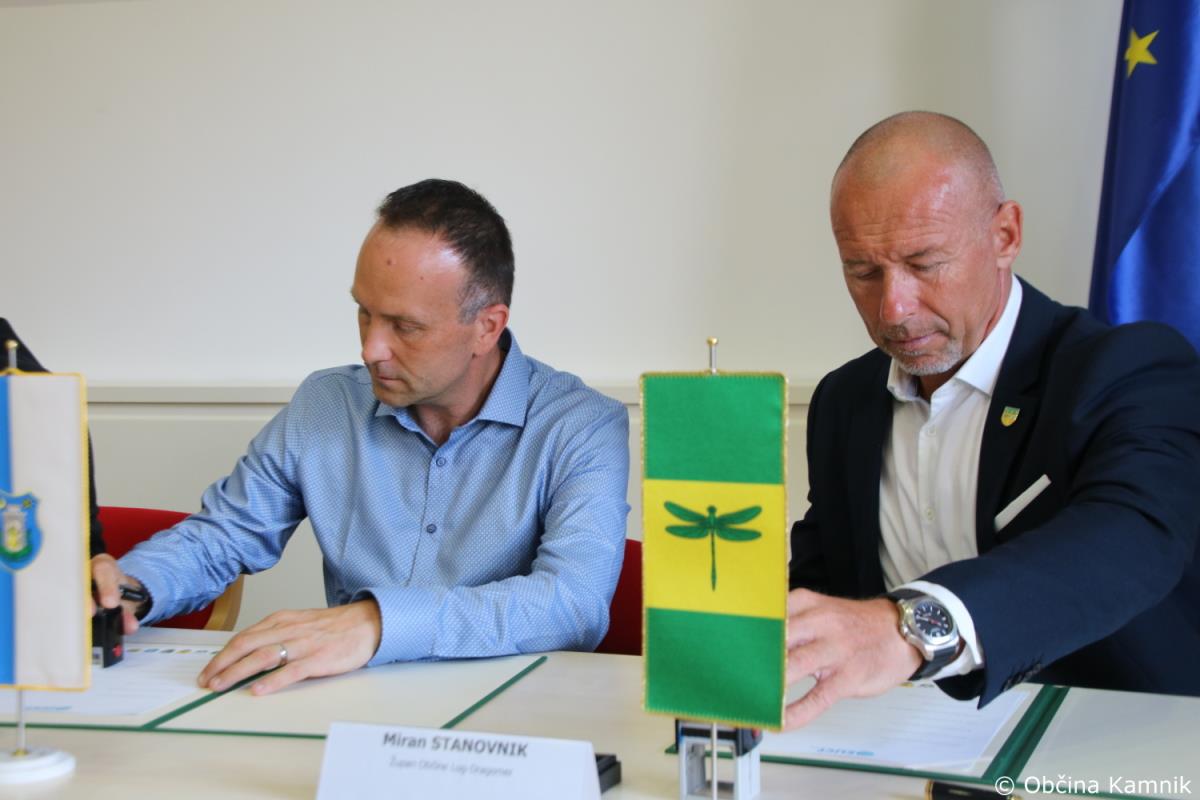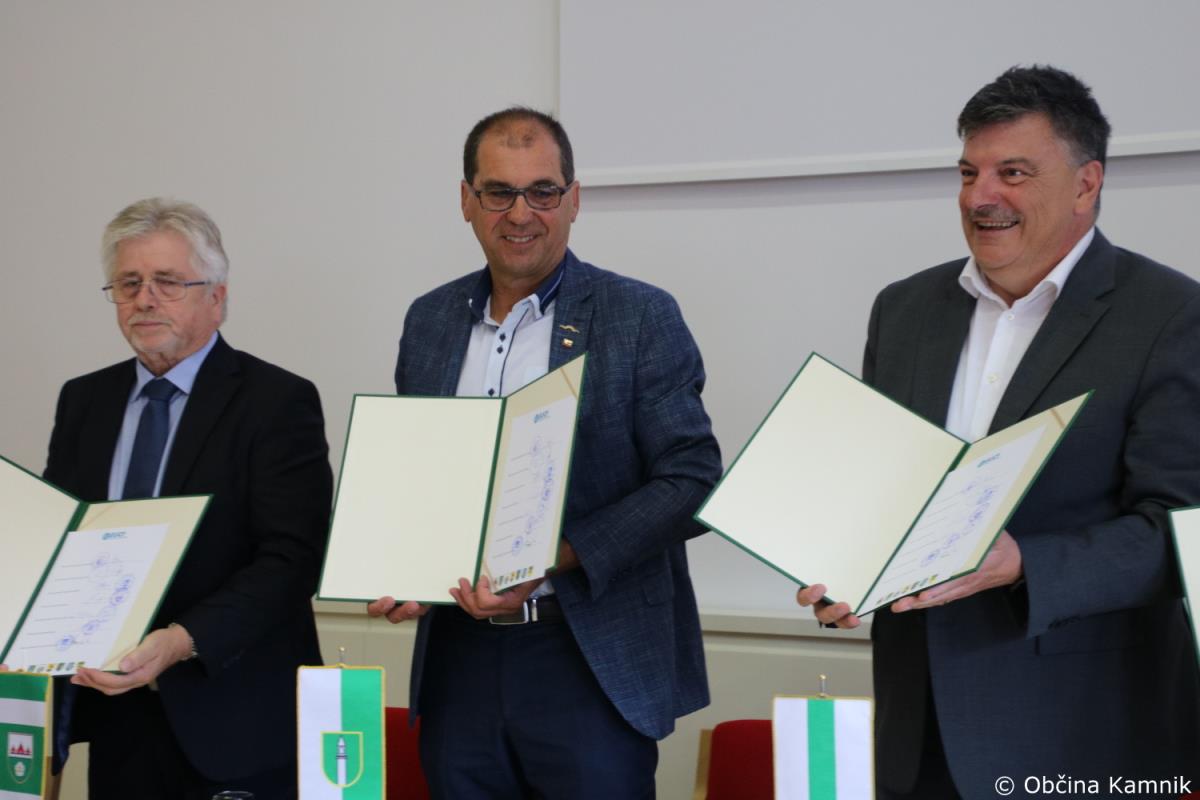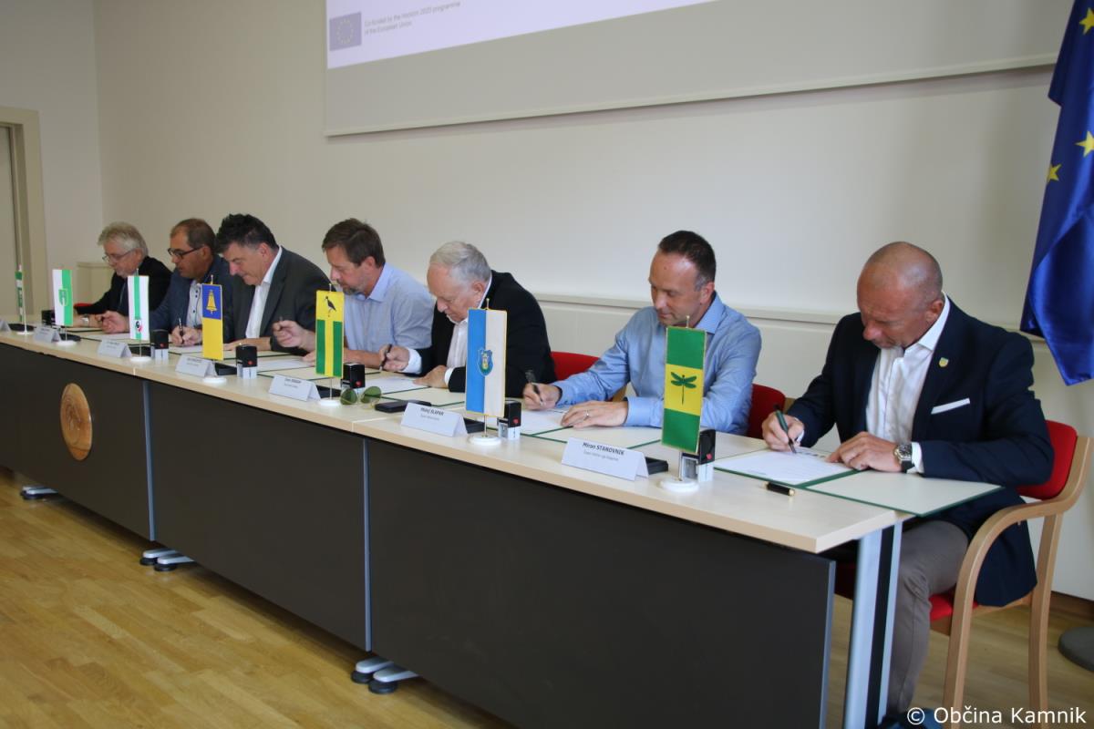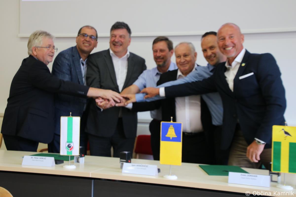 Podžupan Bogdan Pogačar je dopoldan v imenu Občine Kamnik v Grosuplju skupaj z županom Občine Grosuplje, vodilne občine pri sodelovanju v projektu EUCF dr. Petrom Verličem, županom Občine Ivančna Gorica Dušanom Strnadom, županom Občine Dobrepolje Igorjem Ahačevčičem, županom Občine Ig Janezom Cimpermanom, županom Občine Škofljice Ivanom Jordanom in županom Občine Log-Dragomer Miranom Stanovnikom podpisal namero o sodelovanju pri projektu EUCF (European City Facility).