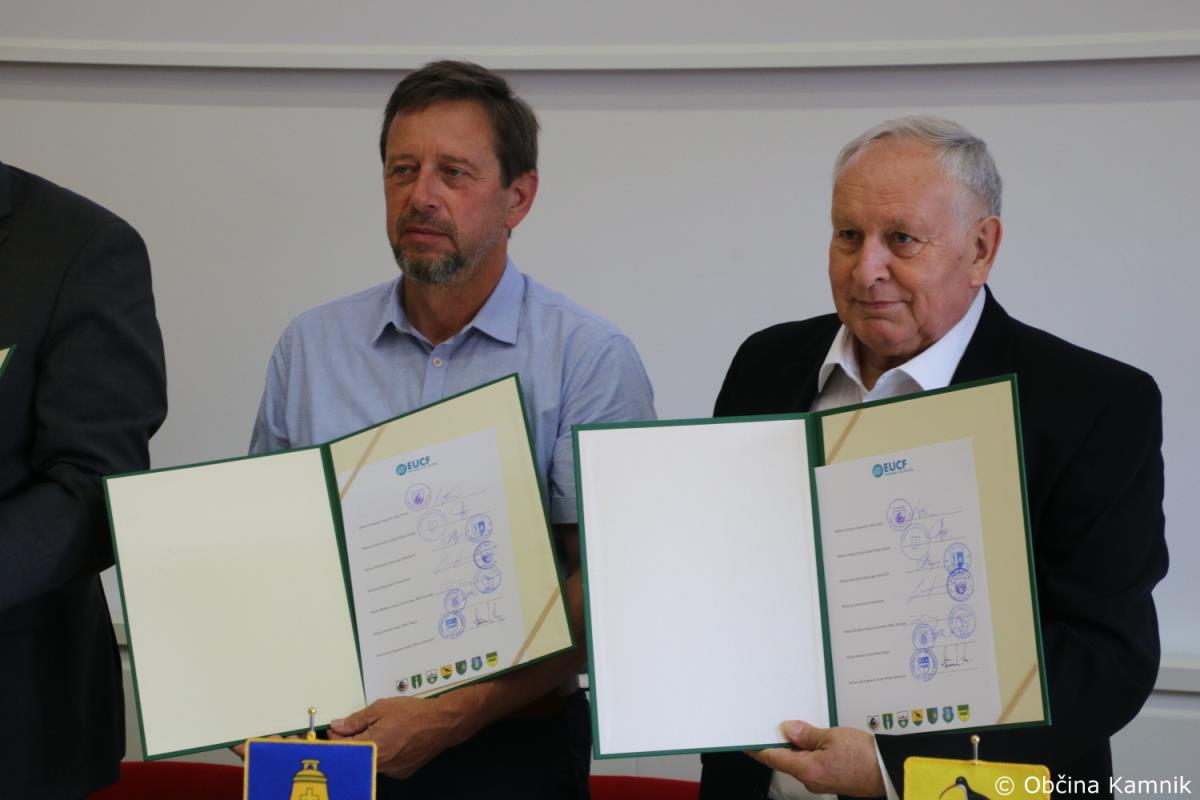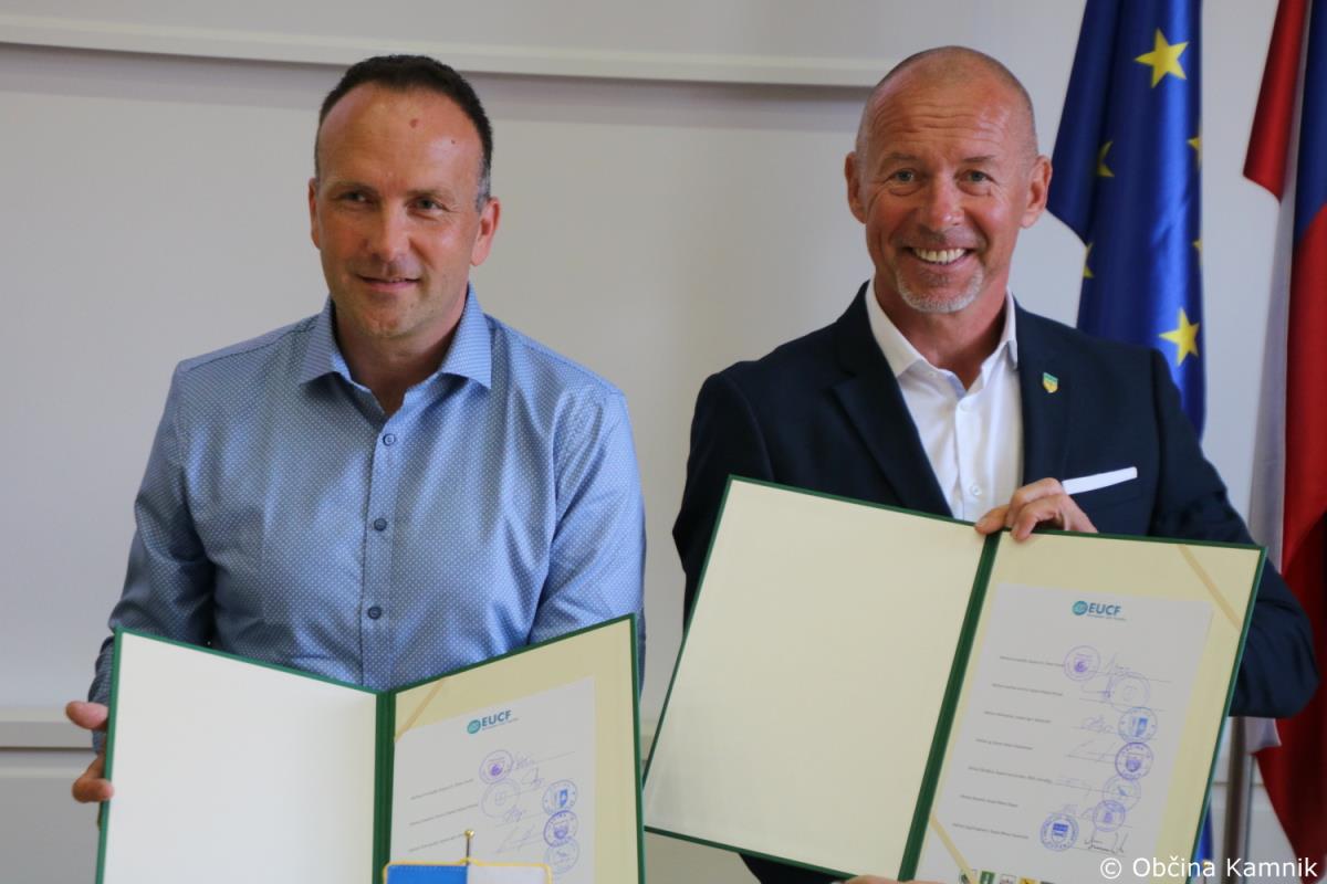 Podžupan Bogdan Pogačar je ob podpisu med drugim poudaril: »Občine imamo ogromen potencial za izvedbo celovitih investicijskih programov pri prehodu v trajnostno oskrbo z energijo. V Kamniku smo v lanskem letu ob celoviti energetski prenovi Policijske postaje Kamnik in Doma kulture Kamnik na streho slednjega umestili prvo fotovoltaično elektrarno na javnih stavbah. To je bil naš prvi korak v smeri trajnostne in učinkovite rabe energije, danes pa skupaj z našimi partnerji pri projektu EUCF stopamo na pot obnovljivih virov energije in učinkovite rabe energije predvsem na javnih stavbah. Projekt nam bo omogočal pridobivanje sredstev za izboljšanje učinkovite rabe energije in pridobivanje obnovljivih virov energije. Ravno Občine smo tiste, ki moramo biti vzor pri prehodu k trajnostni oskrbi z energijo. Obnovljivi viri energije so namreč naložba v prihodnost in dolgoročna investicija za ekološki, čisti načina življenja ter predvsem potencial za skrbno varovanje okolja za naše zanamce. Hvala vsem partnerjem in sodelavcem pri projektu, saj dokazujemo, da smo skupaj močnejši.«