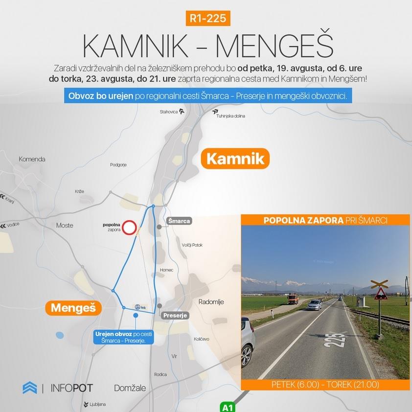 Zapora regionalne ceste med Kamnikom in Mengšem
