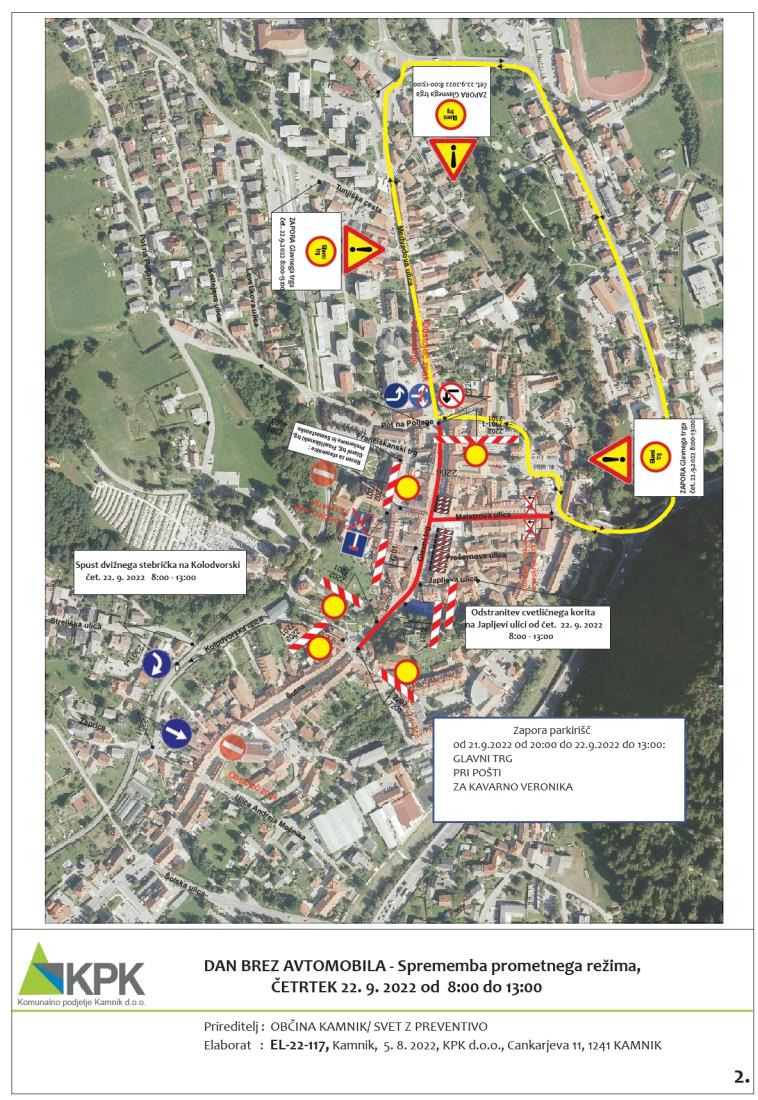 Zapora parkirišč: od srede, 21. 9. 2022, od 20:00 ure, do četrtka, 22. 9. 2022, do 13:00 ure