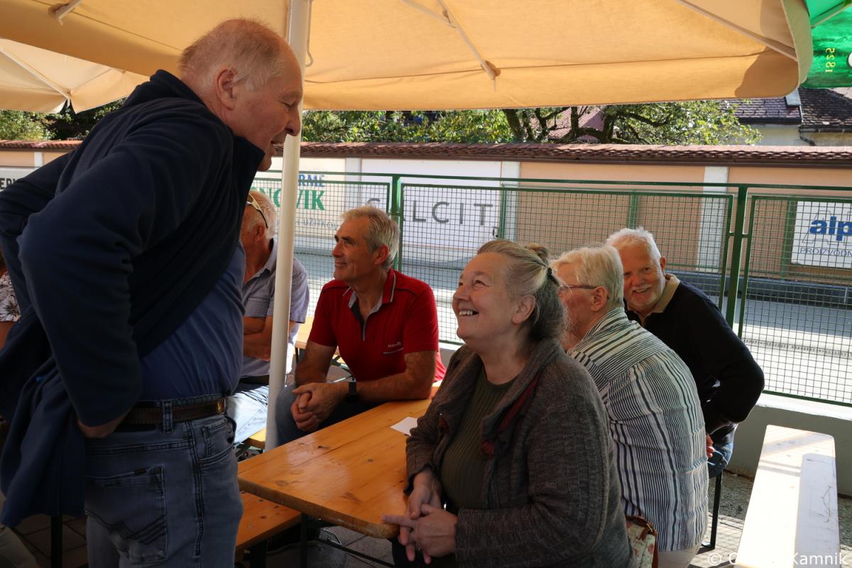 Predsednik Društva upokojencev Kamnik Vinko Polak je članicam in članom zaželel obilo športnih užitkov še naprej in poudaril, da se počasi poslavlja od svoje funkcije, saj je kar nekaj naredil za društvo, zdaj pa je čas, da nekaj naredi tudi zase: »Po trinajstih letih se počasi poslavljam, sem rekel, da marca zaključim svojo kariero. V tem času, bom rekel, sem marsikaj doživel, spoznal čudovite ljudi in tudi nekaj nergačev vmes, ki komaj čakajo, da kaj povejo čez nas, ki delamo praktično zastonj. Moja funkcija je namreč volonterska, v vseh letih sem dobil nagrado 300 evrov, ampak tako je. Nisem odšel zaradi tega, da bi kaj zaslužil v društvu, ampak da v njem nekaj naredim. Držim se načela, da stremim k temu, kaj bom jaz društvu dal. Dalo pa mi je tudi društvo veliko. In to je zmaga. V mojem mandatu smo naredili veliko v društvu, ki se prej 30 let ni dogajalo nič. V prvem mandatu smo zgradili hiško športa, ki je velika zasluga Miha Prosena, delali smo jo praktično sami. Potem smo naredili sanitarije, v drugem mandatu smo obnovili pročelje stavbe, nameščena so bila nova vrata in stopnice v zgornje nadstropje, v tretjem mandatu pa smo urgentno reševali meteorno in ostalo kanalizacijo. Ob tej priložnosti se iskreno zahvaljujem Občini Kamnik, ki nam je pomagala, da je nosilec projektu in brez Občine danes ne bi imeli takšne čudovite prostore. Prenovili smo tudi balinišče, ograjo smo sami sanirali, danes imamo eno boljših igrišč na Gorenjskem. Na to sem ponosen in tudi na vas, ki ste pomagali. Ob tej priložnosti bi se zahvalil tudi našemu pevskemu zboru, ki smo se po treh letih dobili v manjši zasedbi in upam, da bomo dobili še kakšnega člana., hvala tudi Predicam, ki so pripravile tudi čudovito razstavo. Posebej hvala športnikom, ki so osvojili letos ogromno pokalov.«