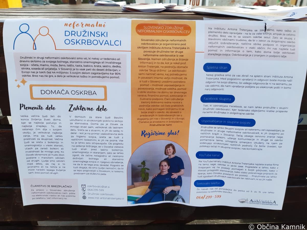 V ta namen sta dve prostovoljki Inštituta Antona Trstenjaka na Glavnem trgu v Kamniku ozaveščali mimoidoče občane in jim predstavili namen in poslanstvo neformalnih oskrbovalcev.
