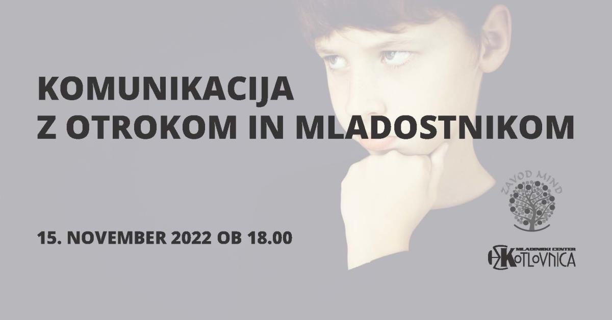 V torek, 15. novembra 2022, se bo v MC Koltovnica, ob 18. uri odvilo prvo predavanje za starše Komunikacija z otrokom in mladostnikom v izvedbi Zavoda Mind.
