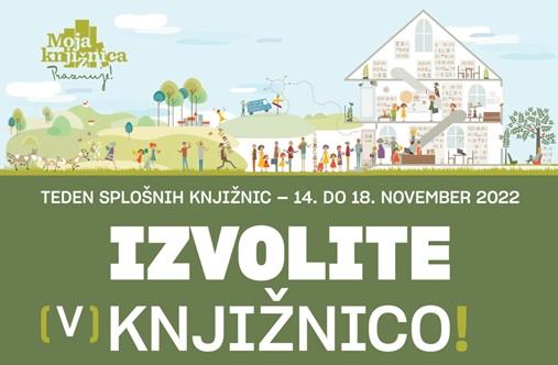 Med 14. in 18. novembrom 2022 knjižnice po vsej Sloveniji praznujemo Teden splošnih knjižnic s srečanji z avtorji, razstavami, brezplačnim vpisom, promocijo domoznanskega gradiva in drugimi dejavnostmi.