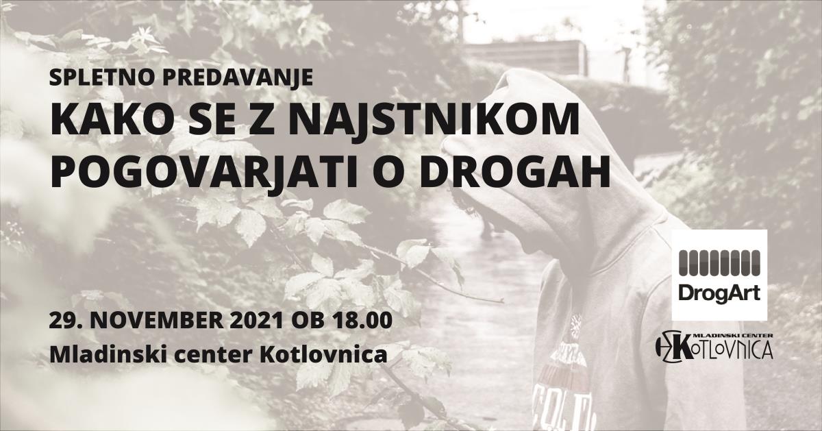 V torek, 29. novembra 2022, se bo v MC Kotlovnica, ob 18. uri odvilo tretje predavanje za starše, Kako se z najstnikom pogovarjati o drogah, v izvedbi Drogarta-a.