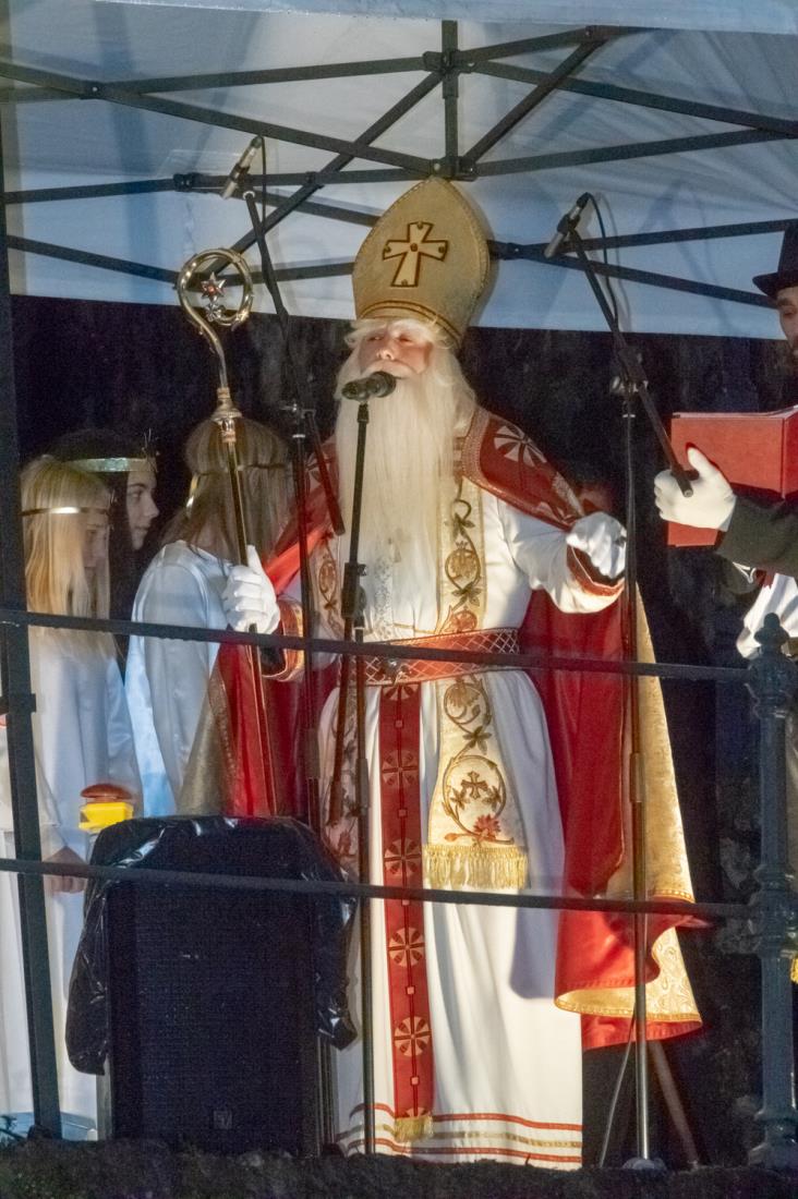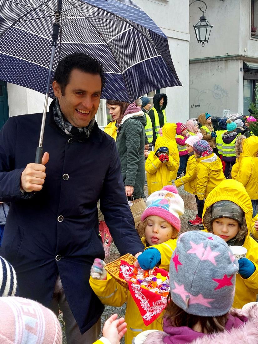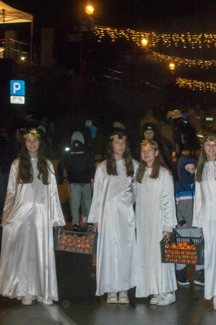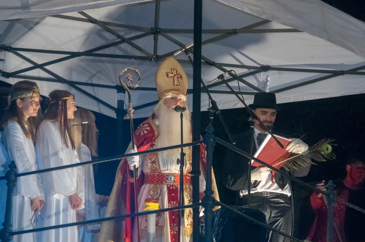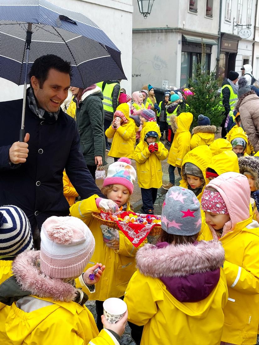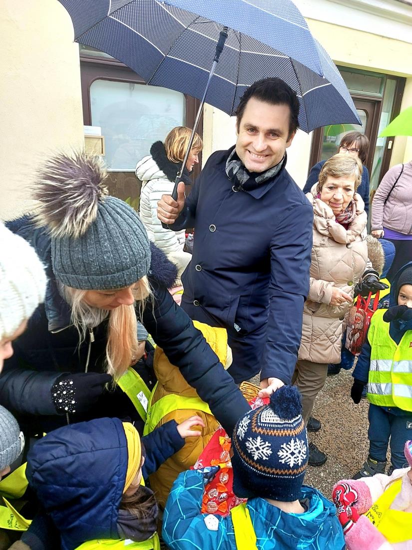 Včeraj, ravno na Miklavžev večer, je župan Matej Slapar skupaj z zbranimi otroci odšteval do prižiga mestne praznične okrasitve. S pritiskom na veliki magični rdeči gumb se je v Kamniku prižgalo tisočero novoletnih lučk in polepšalo sivino hladnih zimskih dni ter privabilo nasmehe na obraze otrok, ki so ob pobočju Malega gradu dočakali prvega dobrega decembrskega moža sv. Miklavža. Ob simboličnem prehodu teme v svetlobo je župan Matej Slapar zbranim otrokom in njihovim staršem predal posebno sporočilo, da naj se ravno v prazničnih dneh vsi spomnimo na osamljene ljudi, predvsem starejše, in na otroke, ki so se morda znašli v takšni ali drugačni stiski, in jim po svojih najboljših močeh v teh dneh pokažemo, da niso sami – pa naj gre le za prijazen nasmeh, topel stisk roke ali pa drobno darilce, ki lahko ogreje kakšno osamljeno srce.