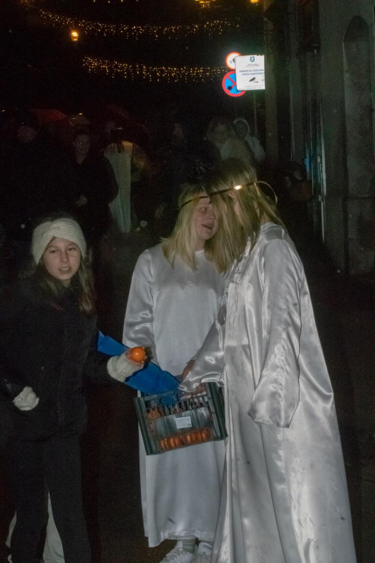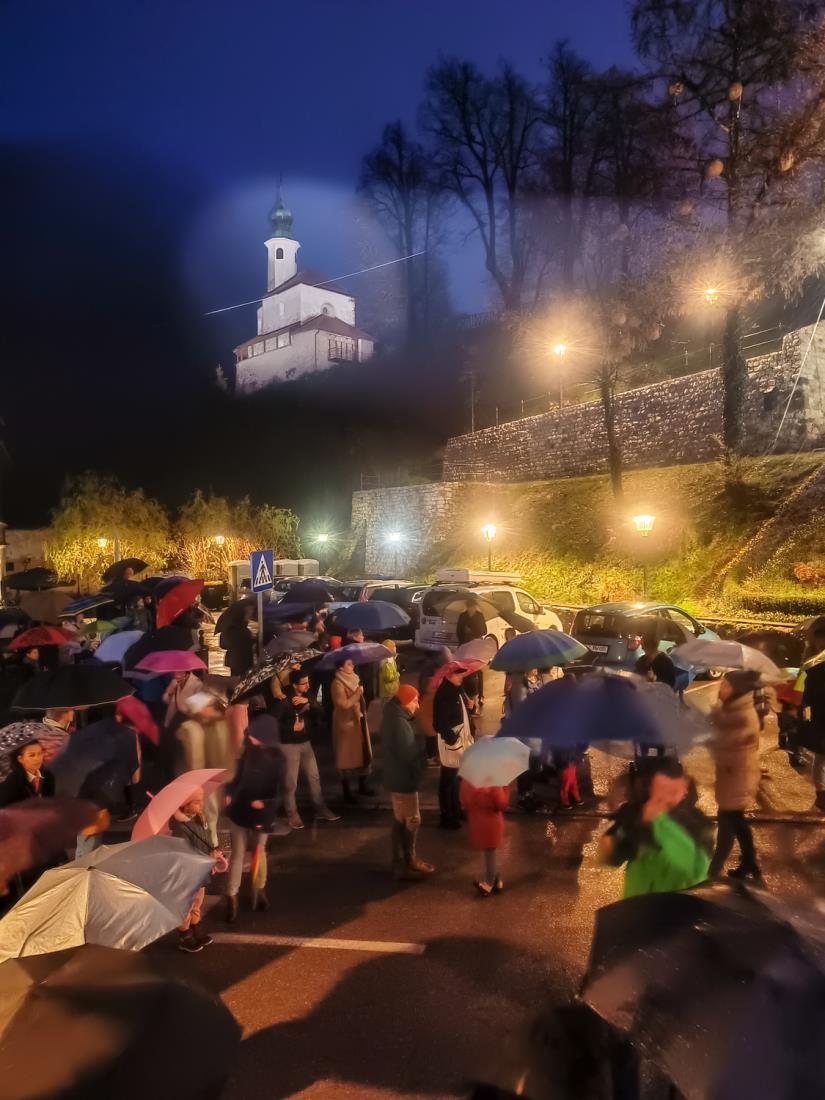 Kljub dežju se je pod Malim gradom zbrala velika množica pisanih dežnikov in čakala sv. Miklavža, ki je obljubil, da pride skupaj z angeli. Za parkeljne pa se ni vedelo do zadnjega trenutka, ker jim dež res nikakor ne diši. Sporočili so, da se raje grejejo pri kotlih, vendar so na koncu vseeno upoštevali Miklavževa navodila in se prišli pokazat kamniškim otrokom čisto za vsak slučaj…