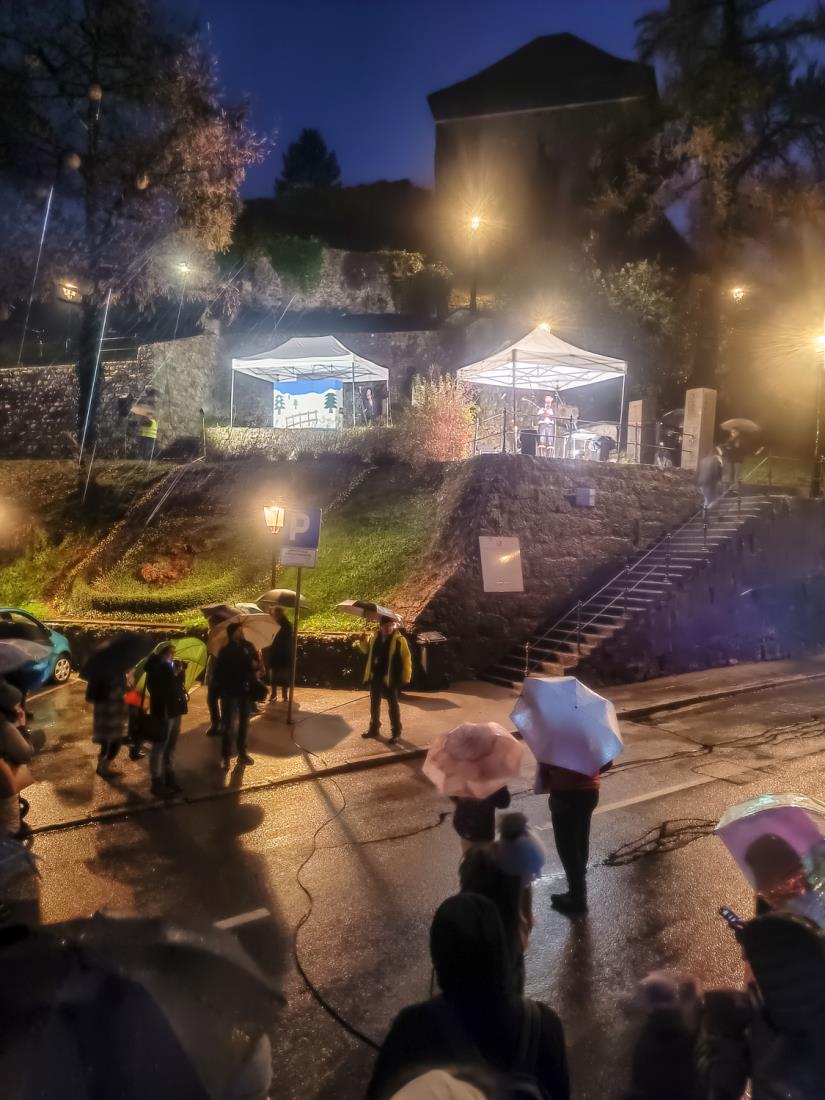 Žal je dež pregnal tudi Mestno godbo Kamnik, saj inštrumenti prav tako kot parkeljni niso vajeni dežja. S svojimi nastopi nas bodo razveseljevali ob drugih priložnostih, že sedaj pa vas vabimo na njihov prednovoletni koncert, ki bo 16. 12. 2022 v Domu kulture Kamnik.