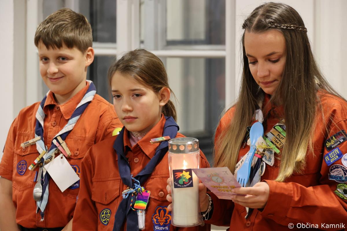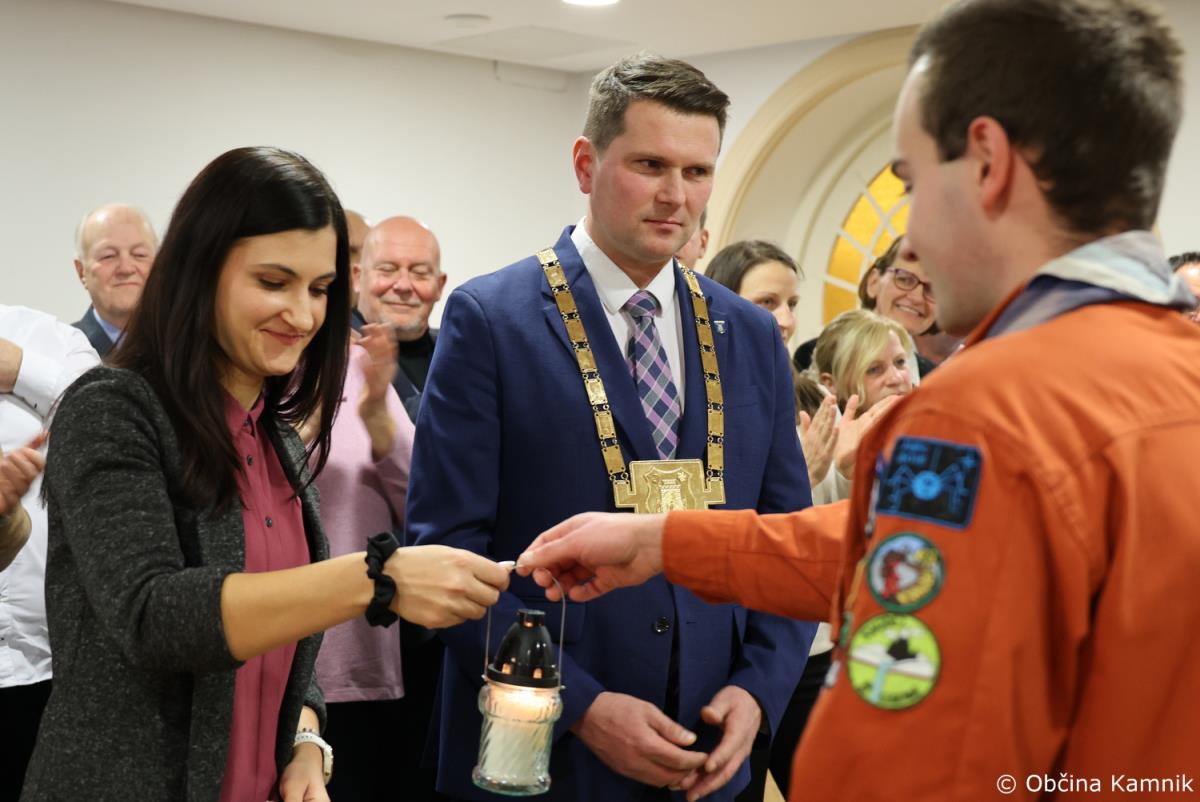 Po 1. (konstitutivni) seji Občinskega sveta Občine Kamnik so kamniški skavti, tako kot že nekaj let zapored, prinesli plamen Luči miru iz Betlehema. Župan Matej Slapar jih je skupaj s članicami in člani novega Občinskega sveta Občine Kamnik sprejel v prostorih občinske stavbe, plamen luči pa sta sprejela najmlajša svetnica Klavdija Hribar in župan Matej Slapar.