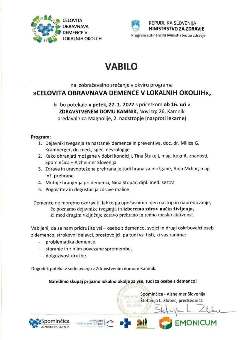 Izobraževalno srečanje »Celovita obravnava demence v lokalnih okoljih«
