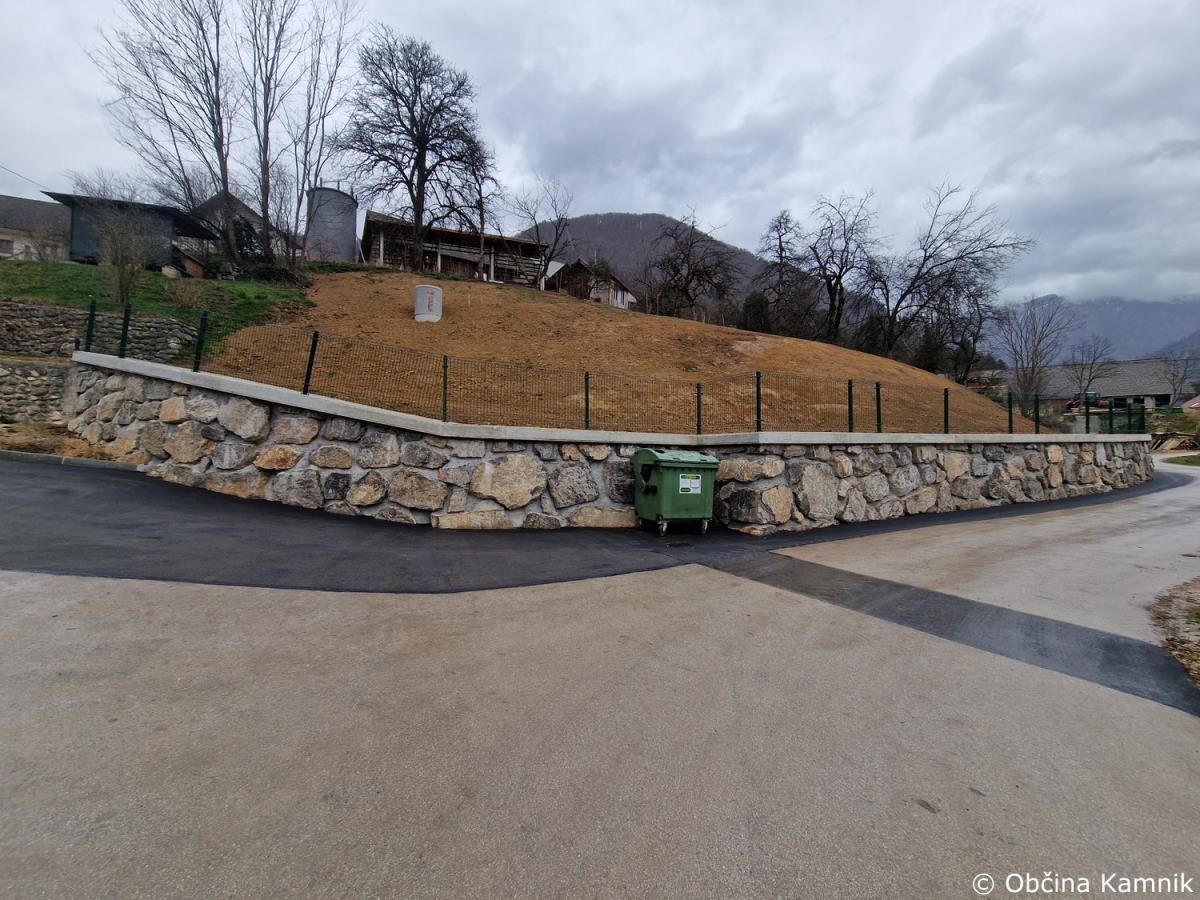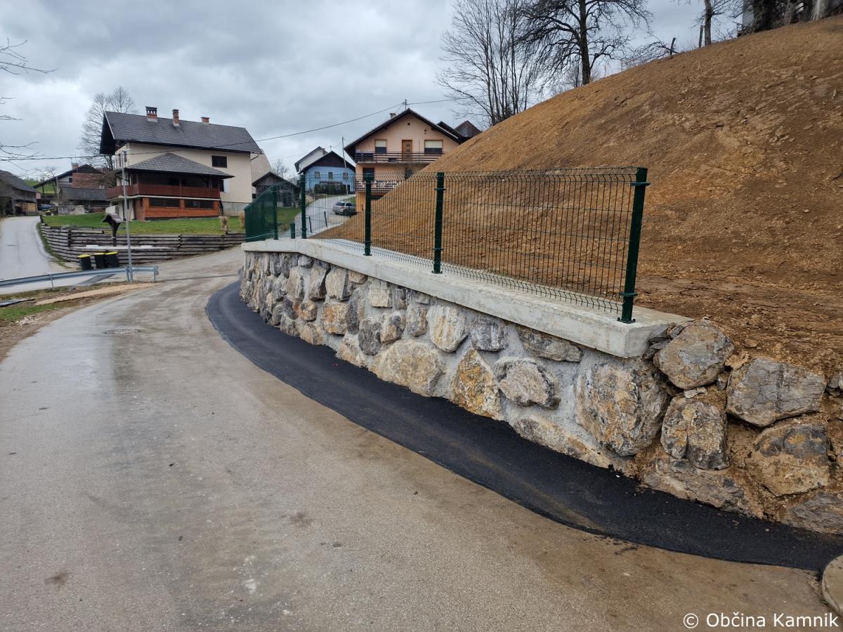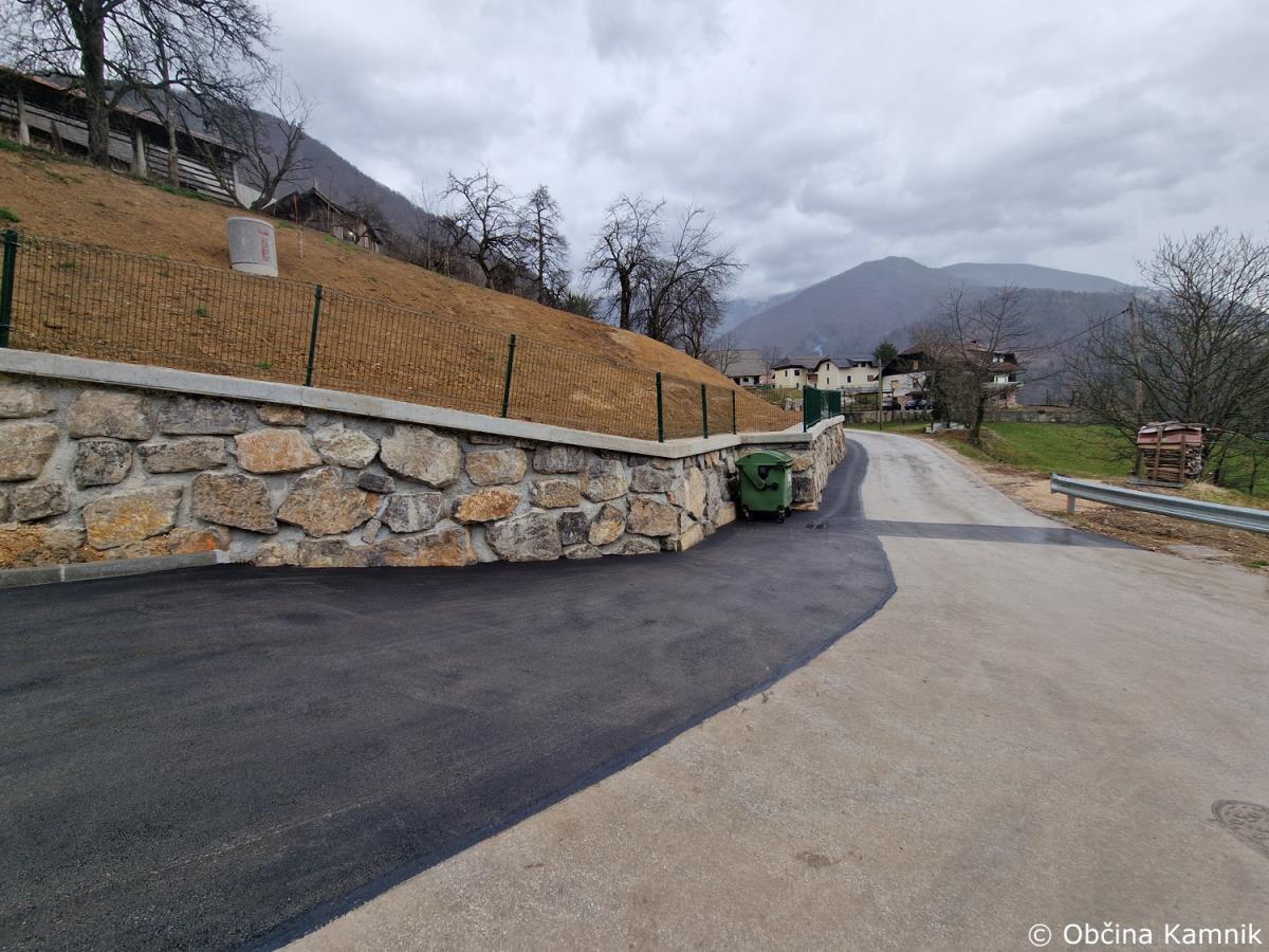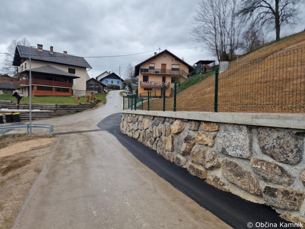 V preteklem tednu se je zaključila sanacija plazu nad občinsko cesto JP660473 Županje Njive. Izvajalec del je izvedel asfaltiranje bankine ceste. V sklopu sanacije je bil izgrajen oporni kamniti zid iz kamna v betonu meri v dolžino 46 metrov, kamnito drenažno rebro je dolžine 9 metrov. Sanacijo je izvedlo Komunalno podjetje Kamnik, d. o. o. pod nadzorom geomehanika. Ocenjena vrednost znaša 58.000 evrov.