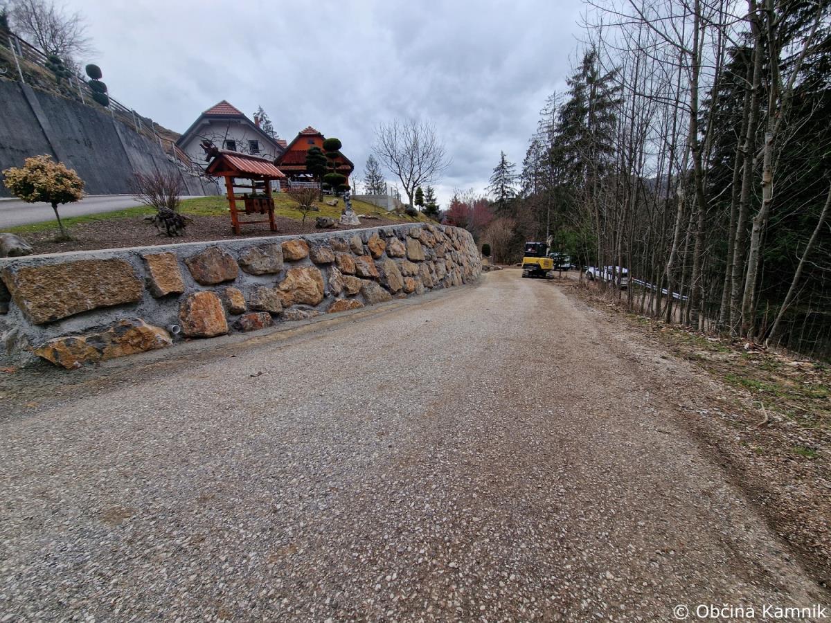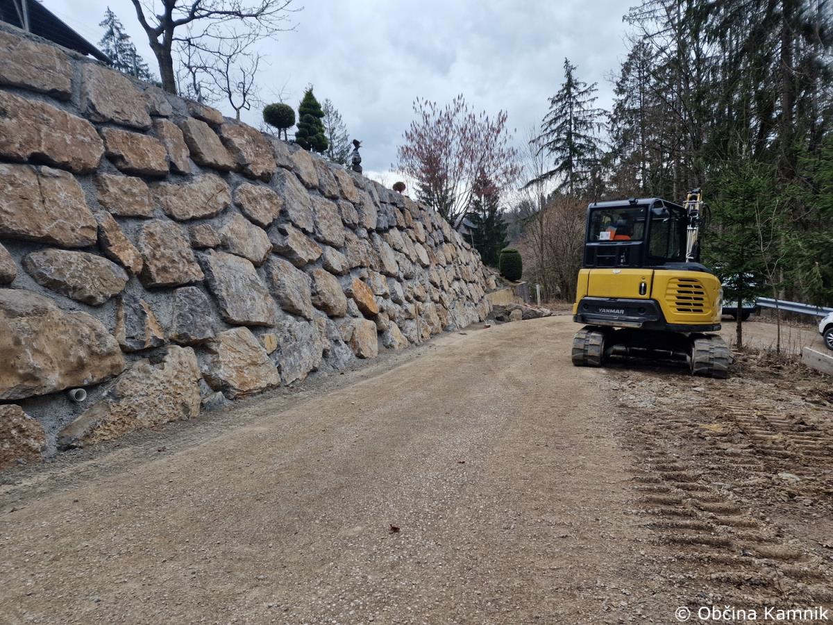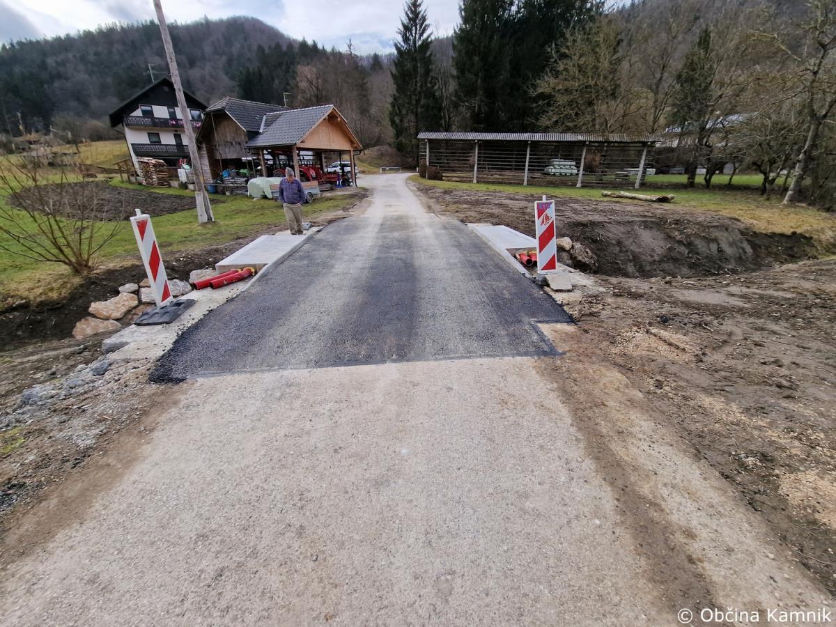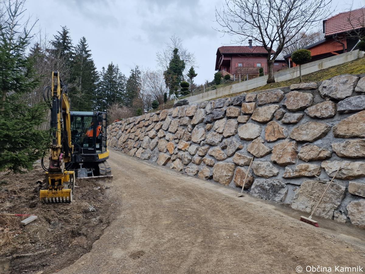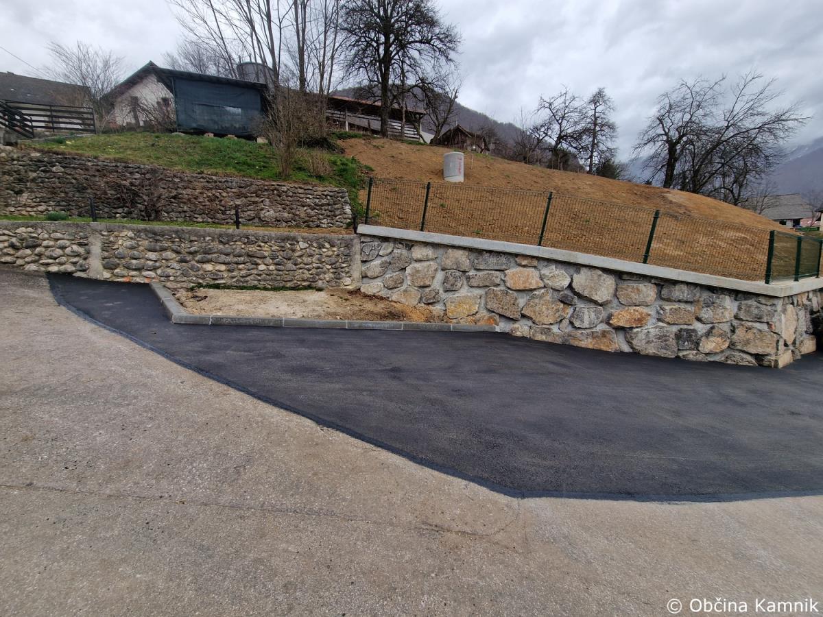 V preteklem tednu se je zaključila sanacija plazu nad občinsko cesto JP660473 Županje Njive. Izvajalec del je izvedel asfaltiranje bankine ceste. V sklopu sanacije je bil izgrajen oporni kamniti zid iz kamna v betonu meri v dolžino 46 metrov, kamnito drenažno rebro je dolžine 9 metrov. Sanacijo je izvedlo Komunalno podjetje Kamnik, d. o. o. pod nadzorom geomehanika. Ocenjena vrednost znaša 58.000 evrov.