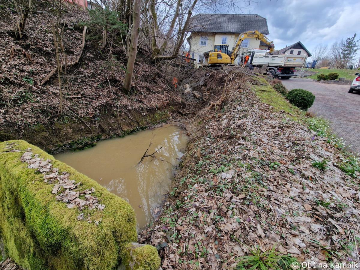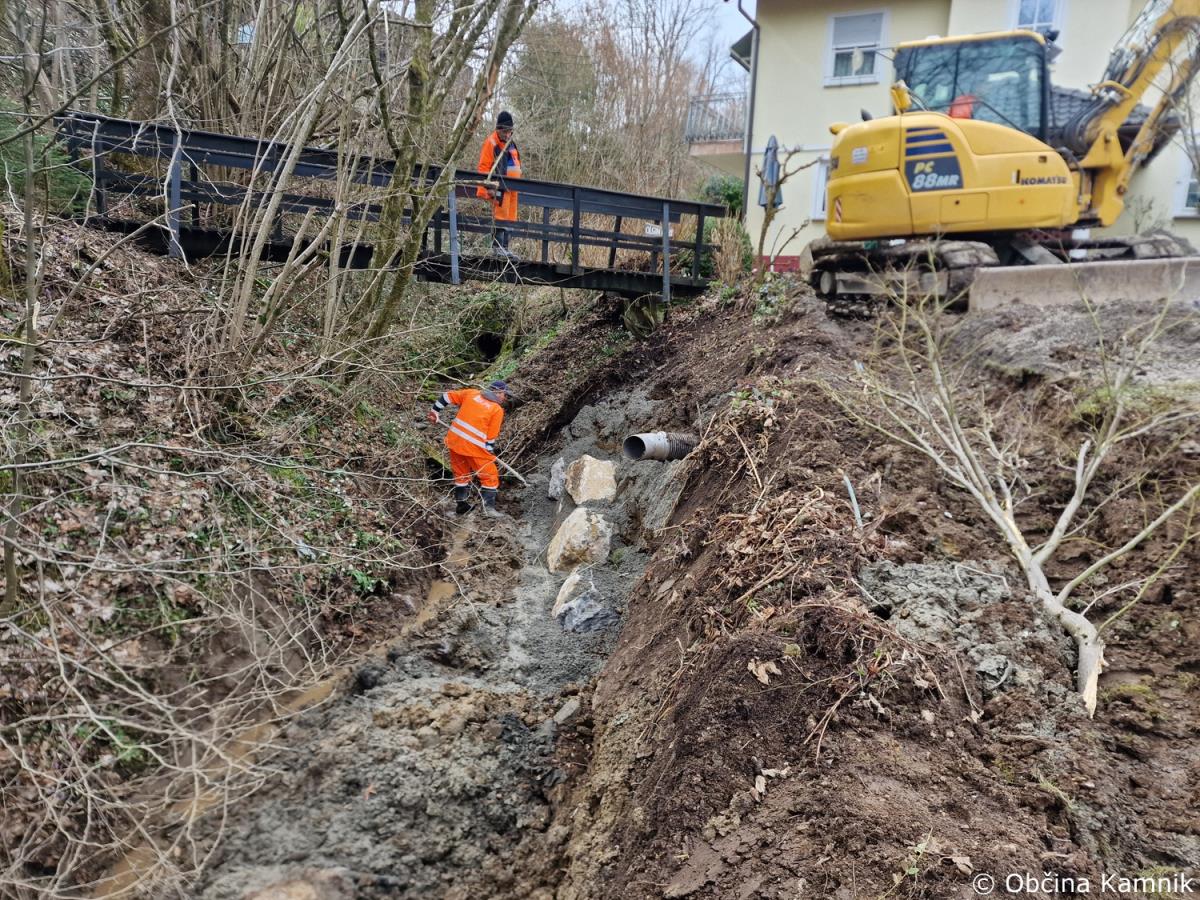 Odvajanje meteornih voda na območju Tunjic je urejeno s kanalom, katerega je bilo potrebno zaradi poškodb brežin interventno utrditi in obložiti s kamnom v betonu. Gradbena dela ob Tunjiški cesti zajemajo izkop, vgradnjo kamna v betonu višini 2,5 metra in zid dolžine 12 metrov. Izvajalec del je Komunalno podjetje Kamnik, d. o. o., vrednost interventne sanacije pa znaša 10.434 evrov. Dela potekajo pod nadzor gradbenega nadzornika ter skladno s terminskim planom.