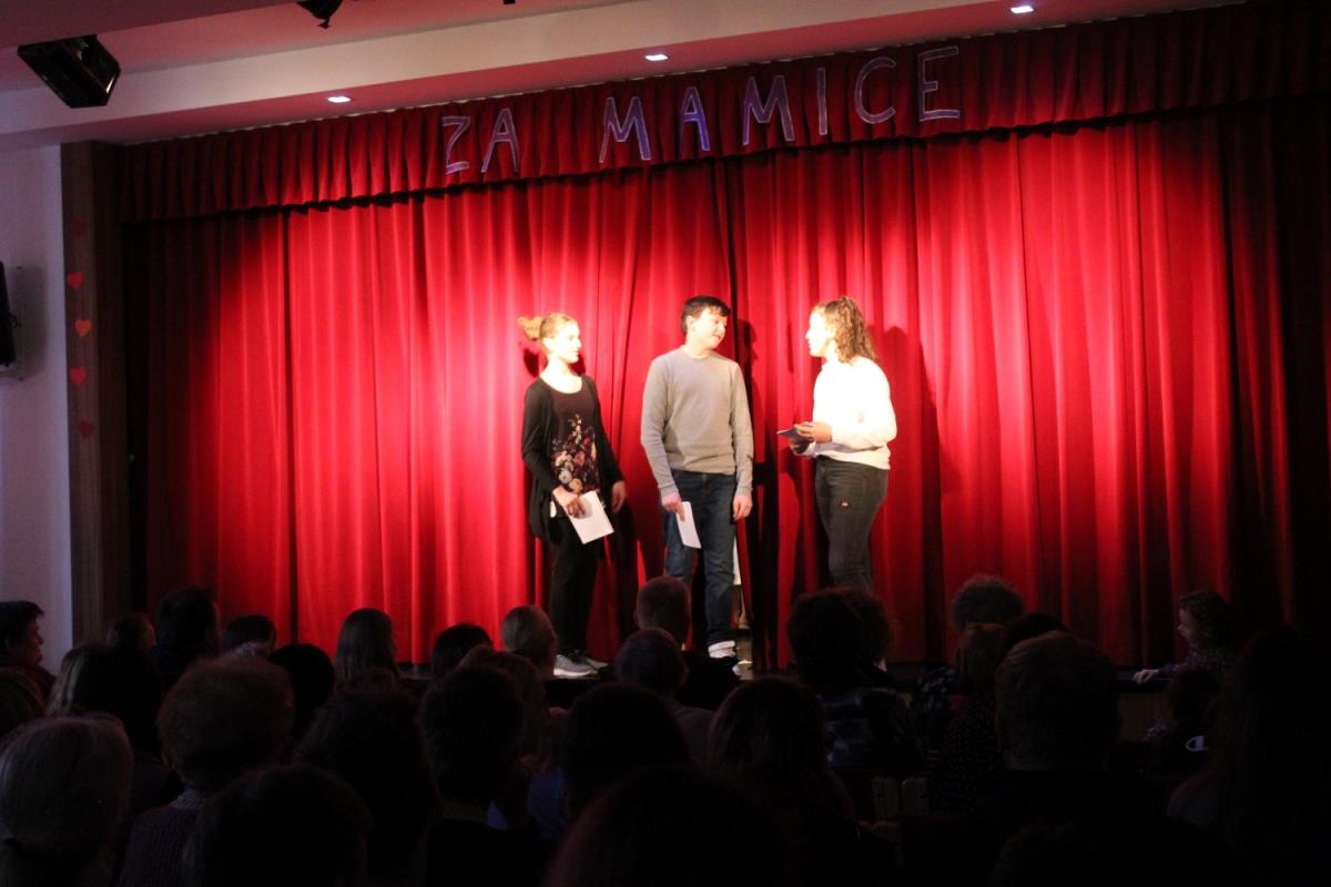 Kaj se zgodi, ko mama odide na službeno pot, so nam pokazali igralci igrice pod vodstvom Doroteje Remih, vsi obiskovalci pa so si lahko ogledali tudi kratek filmček prisrčnih otroških izjav o tem, zakaj potrebujemo mame in v čem so njihove mame najboljše. Skozi prireditev so igrivo vodili Maja Levec, Ana Burja, Bine Petek in Blaž Pirš, ki so vmes nanizali tudi nekaj zanimivosti o živalskih mamah in zgodovini harmonike.