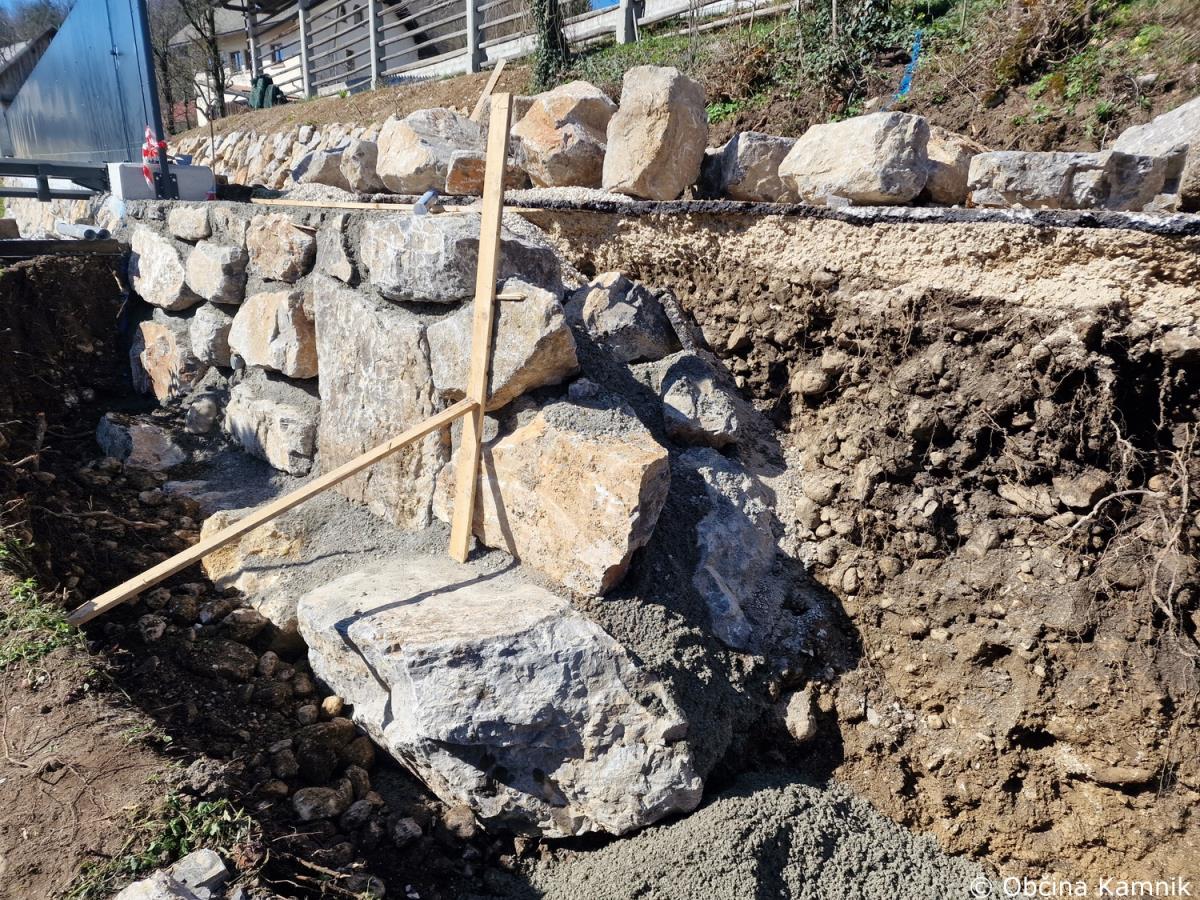 Pod nekategorizirano cesto v Zagorici pri Kamniku je zemeljski plaz, ki ogroža varnost ceste in objekta pod njo. Na podlagi izvedenih geomehanskih raziskav je bila izdelana projekta dokumentacija PZI za sanacijo plazu. Gradbeni nadzor nad sanacijo plazu vrši geomehanik Martin Vrabec. Sanacija plazu zajema izgradnjo oporne konstrukcije, kamniti oporni zid iz kamna v betonu dolžine 15 metrov in višine 2,6 metra, ureditev odvodnjavanja, zavarovanje ukopne brežine nad cesto ter obnovO cestišča. Izvajalec del je Komunalno podjetje Kamnik, d. o. o., vrednost sanacije pa znaša 18.269 evrov.