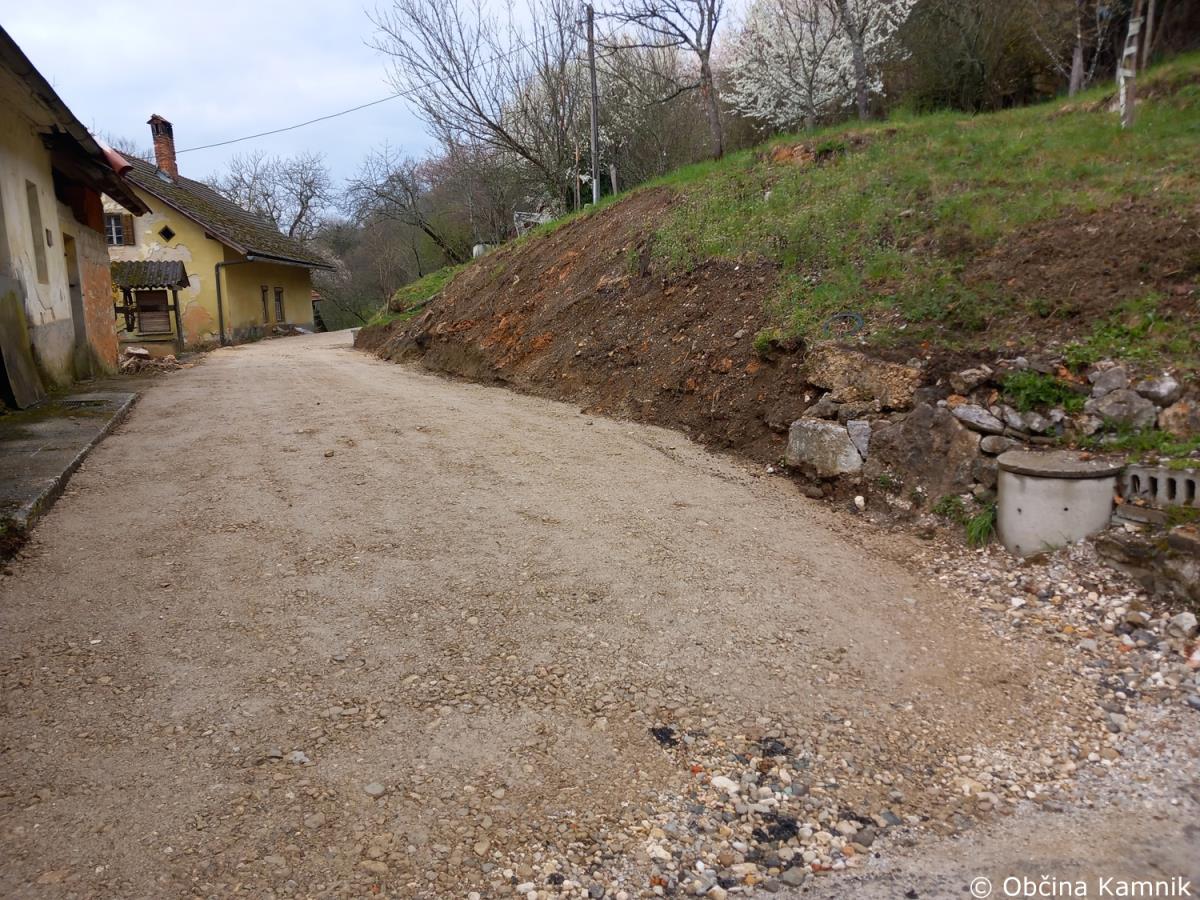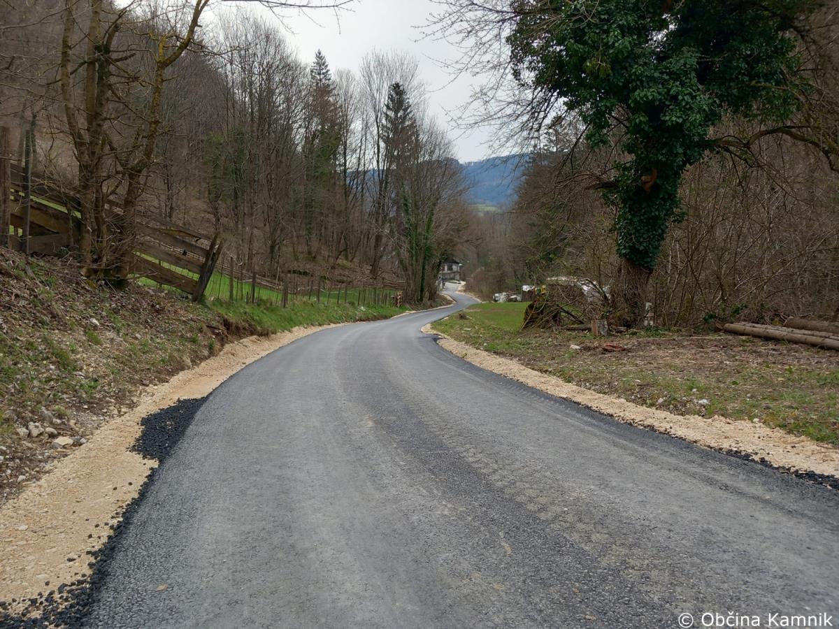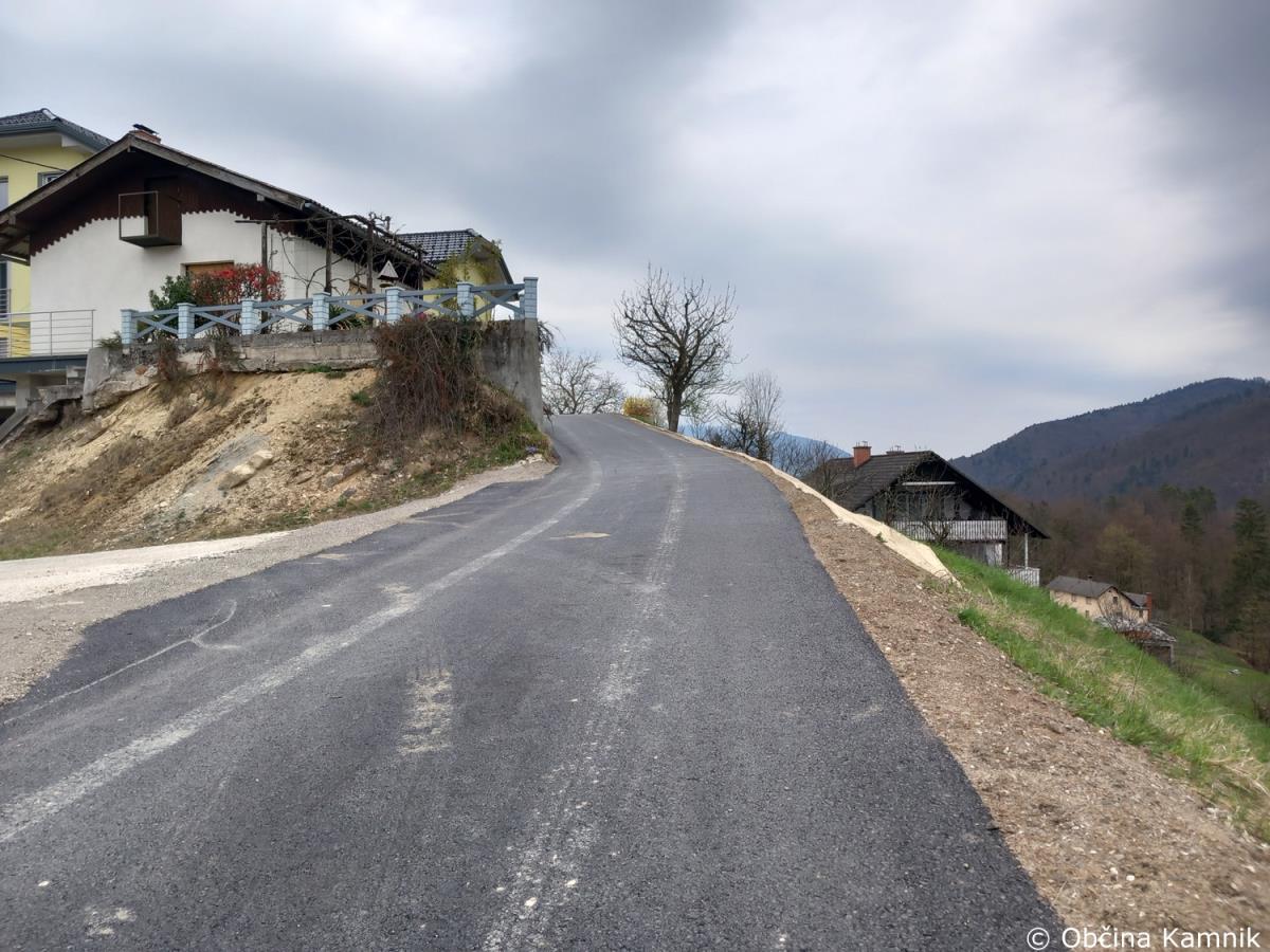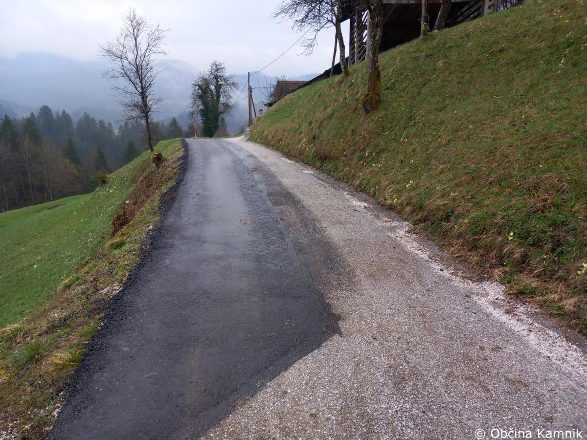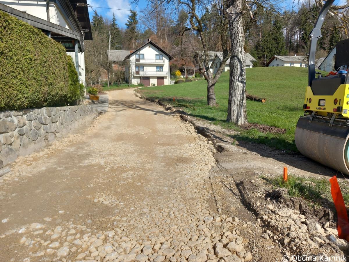 Izvajalec del, Resal, d. o. o., nadaljuje z izvajanjem del za asfaltiranje javne poti na območju Tunjic (Zadnji Vrh - LC 160041), v predvideni dolžini 1.560 metrov, in na območju naselja Hrib pri Kamniku (JP 661112), v predvideni dolžini 50 metrov.