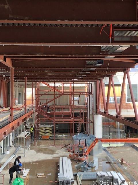 Na gradbišču OŠ Frana Albrehta se je v preteklem tednu izvajalo pokrivanje strehe na lameli A. V lameli B, kjer že nastaja osrednji prostor šole –dvoetažna avla, se izvajajo ključavničarska dela na kovinski konstrukciji, poteka tudi priprava za zapiranje prostora s steklenimi fasadnimi elementi in ostala obrtniška dela.
