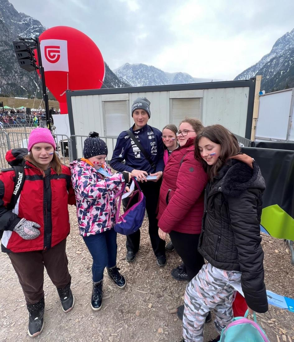 Učenke Osnovne šole 27. julij, pa so imele prav poseben privilegij, saj so si polete lahko ogledale z navijaške tribune. O obisku Planice so zapisale naslednje: “Učenke OŠ 27. julij se zahvaljujemo zavarovalnici Triglav, ker nas je odpeljala v Planico. Večina izmed nas, si je v Planici prvič ogledala smučarske skoke. Navdušene smo bile nad izvrstno organizacijo saj smo poleg dobre malice in toplega čaja dobile tudi sponzorske kape in tatuje. Polete smo si ogledale kar s tribune, ki nam je nudila dober pogled na skakalnico. Med nami se je sprehajal kuža Pazi in z nami bučno navijal za naše slovenske Orle, zraven nas je navijal nekdanji predsednik Borut Pahor. Bravo Anže, Timi in Domen, ki ste nam pokazali odlično tekmo in v klasifikacijah zasedli prva tri mesta. Na prizorišču smo srečali Ceneta Prevca, ki nam je podaril sliko s podpisom. Za odlično razpoloženje so poskrbeli tudi glasbeniki Challe Salle, Eva Boto in Nipke, ki so med nas delili svoje avtograme in se z nami fotografirali. Želimo si, da nas zavarovalnica Triglav tudi v prihodnje tako lepo razveseljuje. Hvala!”